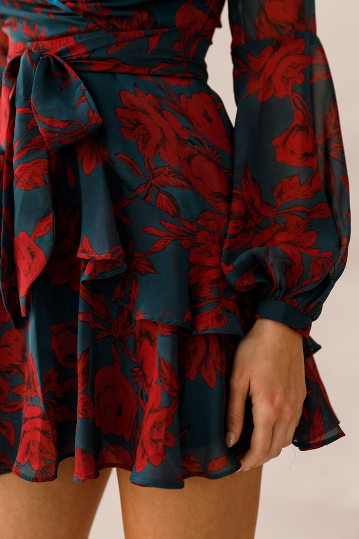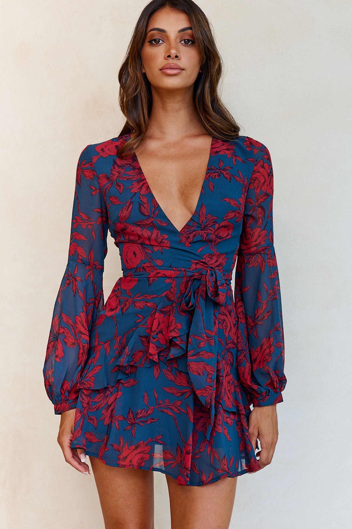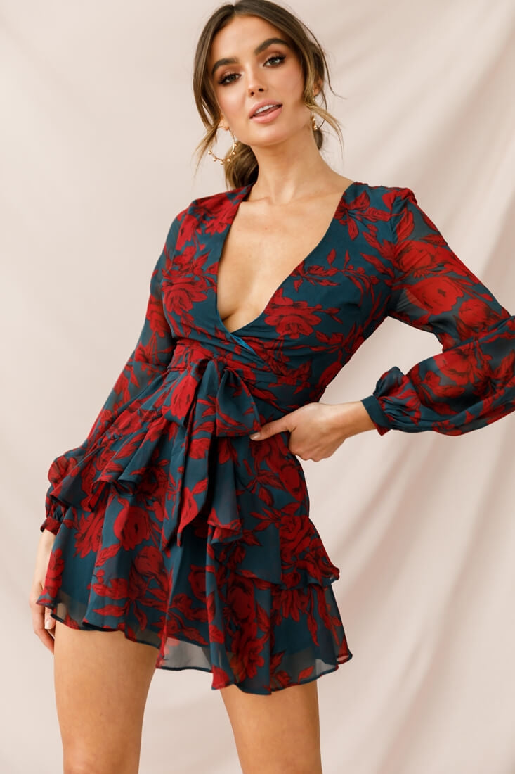 Wedding? Cocktail party? This pretty dress has you covered. With its on-trend ruffles, long balloon sleeves and flattering, faux-wrap neckline, you'll be turning heads every where you go. Pair it with single strap black heels or ankle boots for a look we are loving.