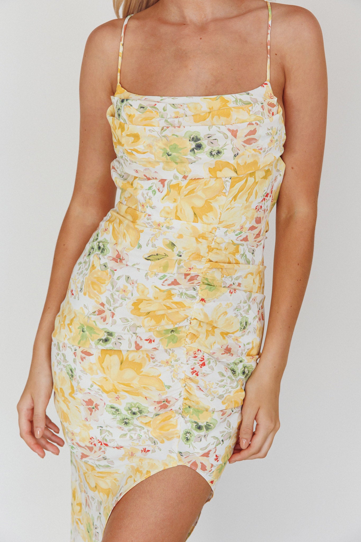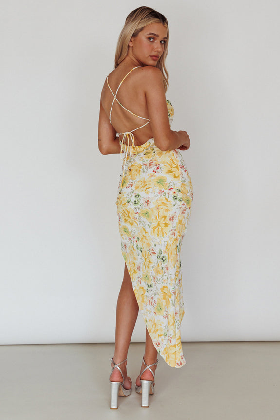 Steal the show in our pretty Klara midi dress. Featuring a gorgeous floral print and thigh-high split. Perfect for a garden wedding or flirty date night. Team it with white heels and a clutch for an unforgettable look.