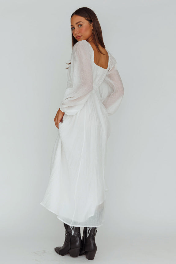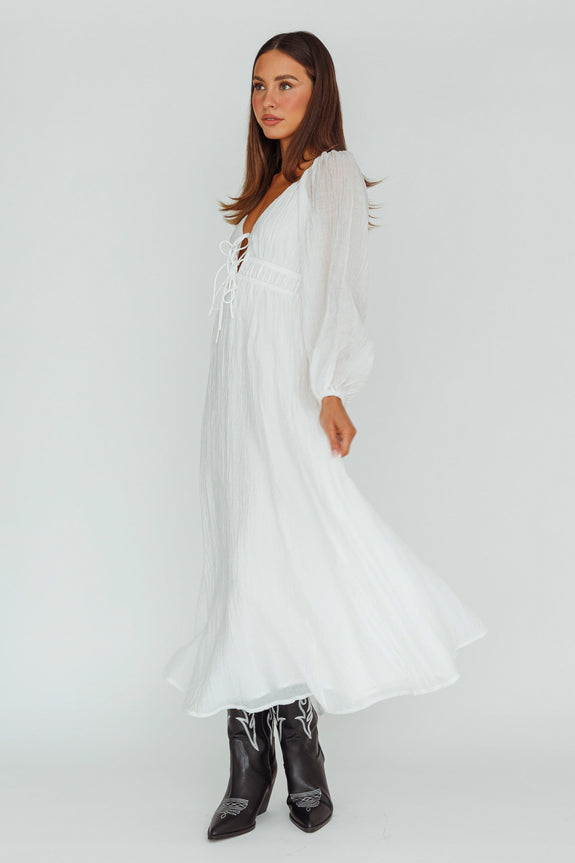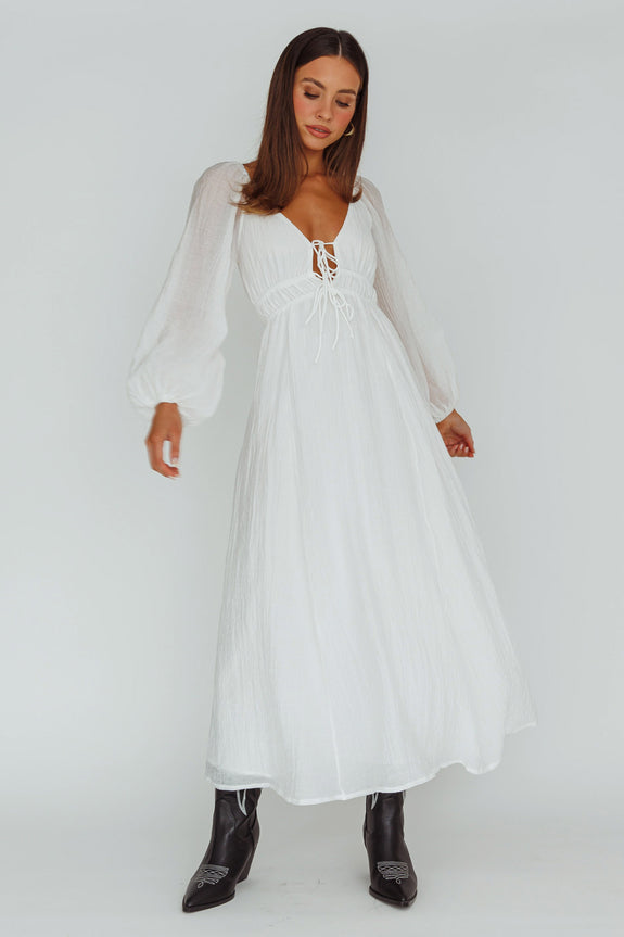Float through your day in our pretty Kylin maxi dress. Featuring long, balloon sleeves and a tied bust, it's perfect for sunny weekends strolling the farmers' markets or coffee dates with your girls. Team it with sandals and a woven tote for a look we are loving.
