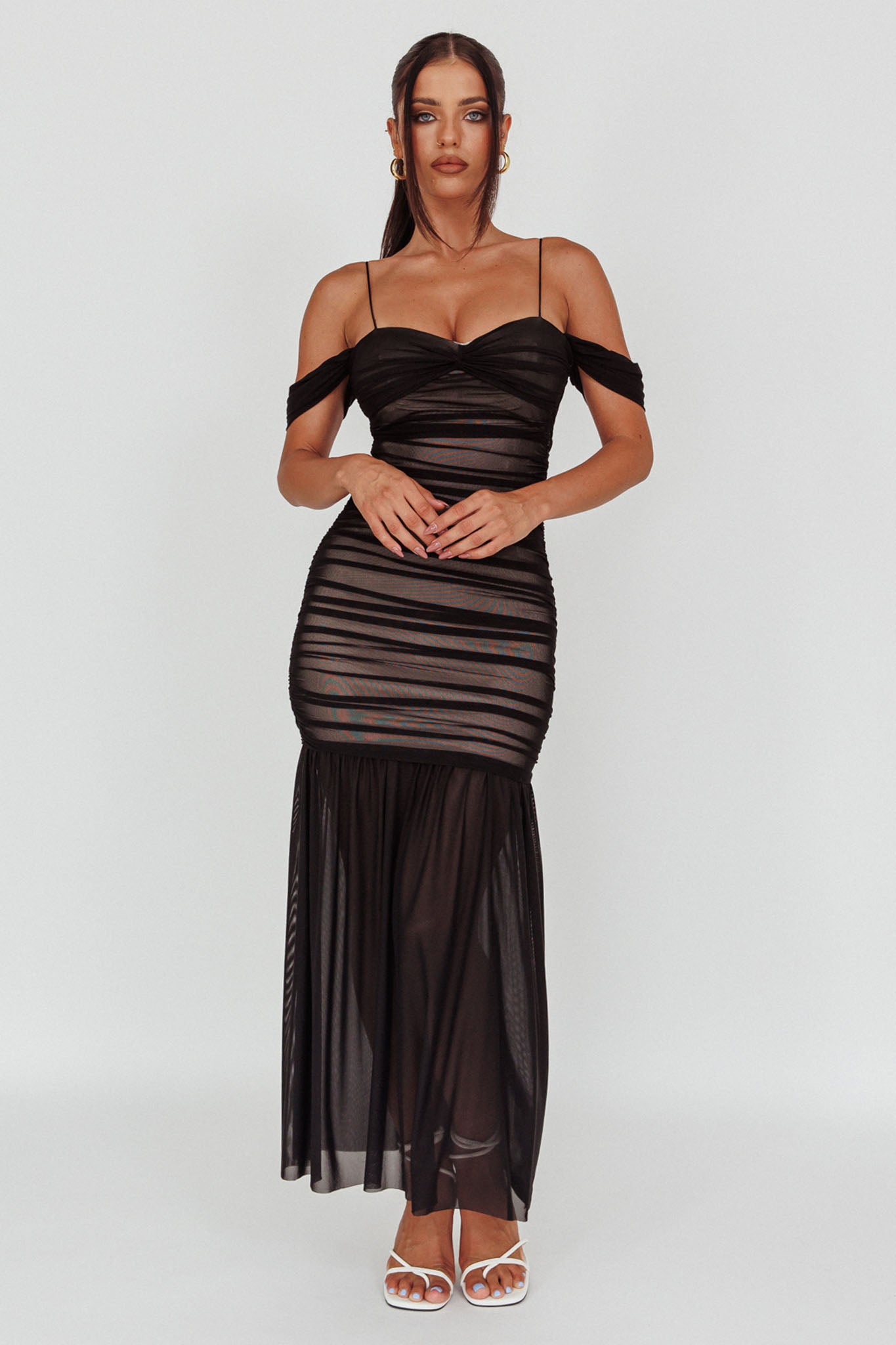 You will steal the show in our gorgeous La Salle maxi dress. Featuring a ruched mesh overlay and off-shoulder style. It's perfect for prom or a special occasion. Team it with black, strappy heels and a clutch for a look that will make heads turn.