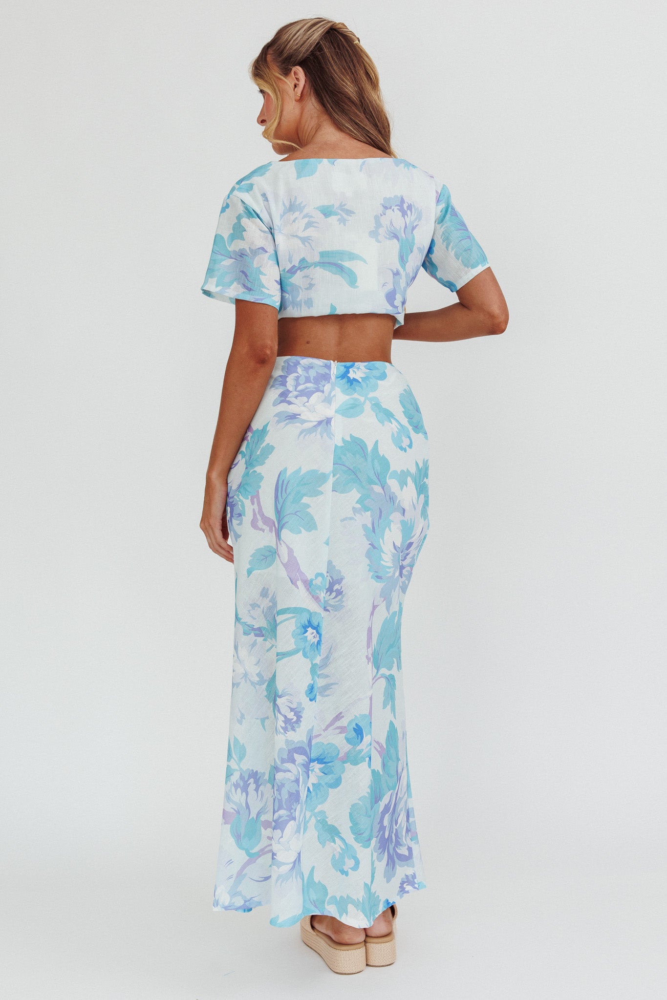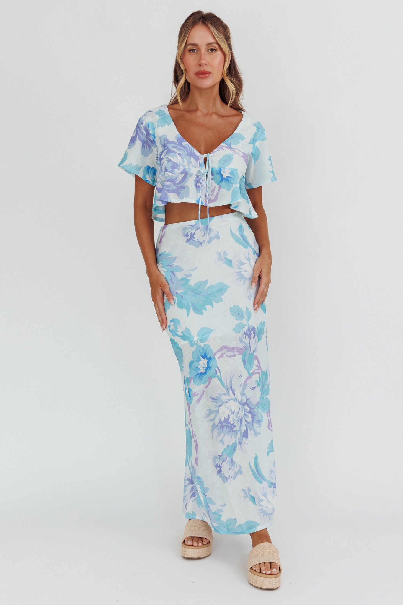 Hello, gorgeous! You'll feel like a princess in our pretty La Vie maxi skirt. We are head over heels for its feminine floral print. It's perfect for Sunday brunch with your besties teamed with kitten heels and its matching crop top for an unforgettable look.