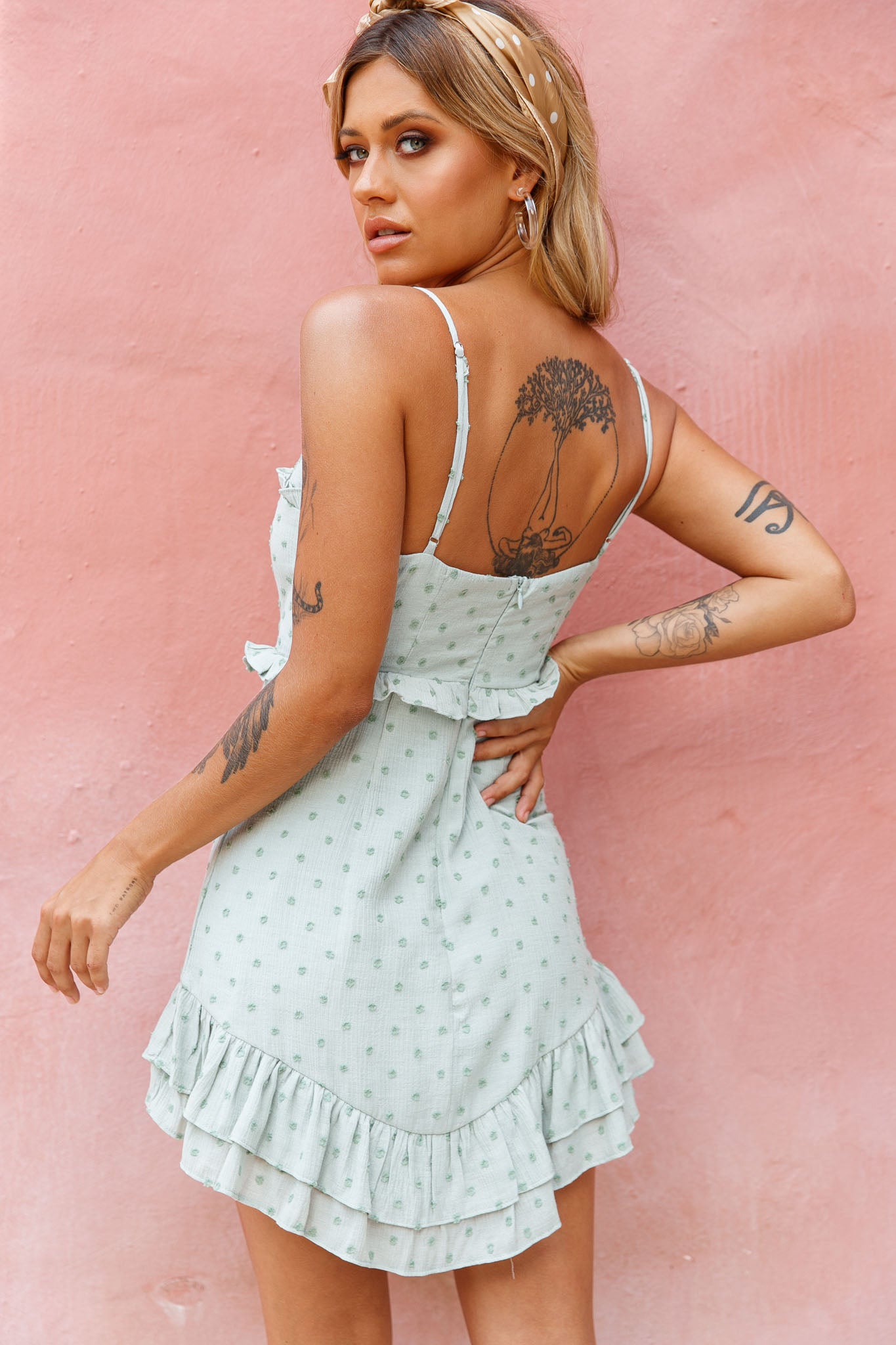 Getcha getcha yaya! You'll be stealing the spotlight in our Lady Marmalade dress. If attention is what you want, girl, that's what you're gonna get! We're obsessed with its string-tied bust and frill trim. The perfect choice for a girls' night out, sipping cocktails and dancing 'til dawn. Team it with some perspex heels and a purse for a feminine-chic look. Oui oui!