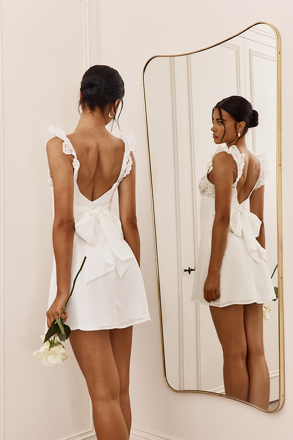 Make jaws drop in our gorgeous Lakyn mini dress. Featuring a lace bust and bow tie in the back. It's perfect for a bridal shower or special occasion teamed with tie-up heels and a satin clutch for a look we are in love with.
