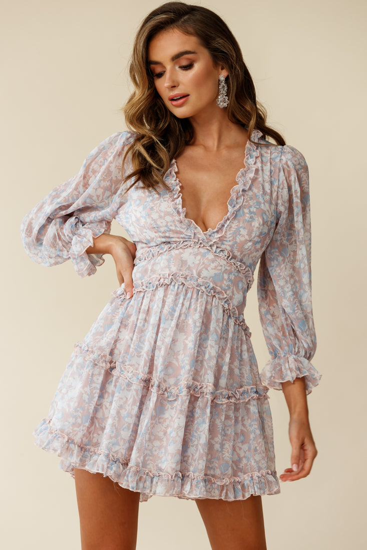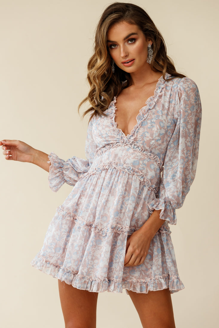 Laney. She's ALL that. And you will be too in this super cute dress. Our favorite part? THE most adorable cutout back feature trimmed with the same pretty ruffle detail echoed throughout the dress. The sheer chiffon is soft and floaty, perfect for a garden wedding or wear it on a girls' night out with strappy nude heels and a cute purse.