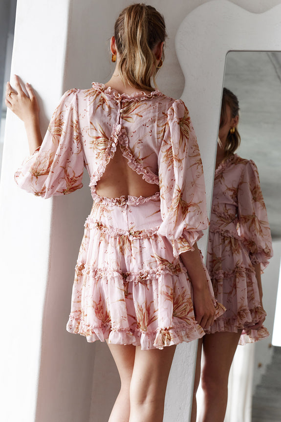 Laney. She's ALL that. And you will be too in this super cute dress. Our favorite part? THE most adorable low back trimmed with the same pretty ruffle detail echoed throughout the dress. The sheer chiffon is soft and floaty, perfect for a birthday celebration or wear it on a girls' night out with strappy nude heels and a cute purse.