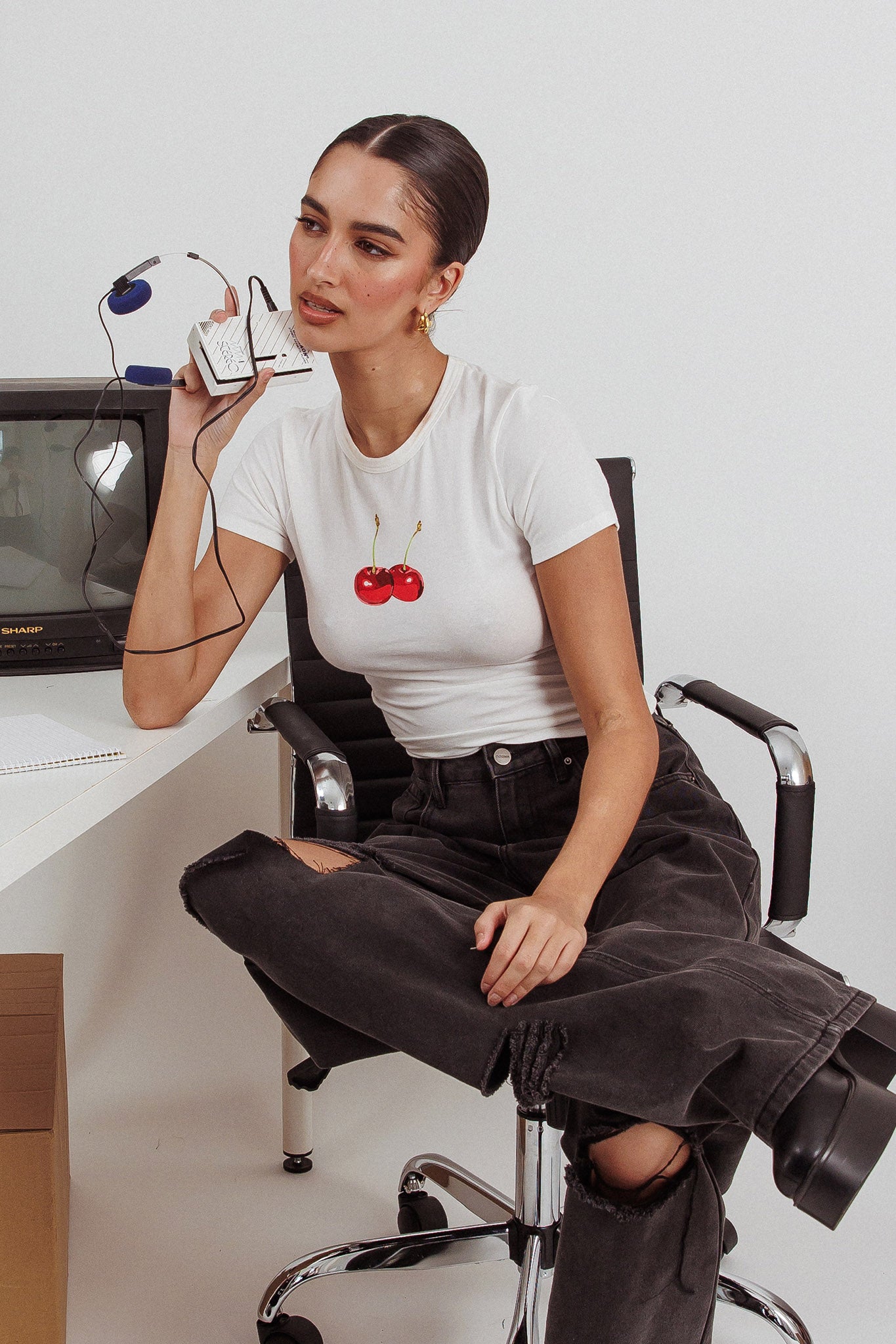 Channel your inner It Girl in our chic Lanna baby tee. We are loving the adorable cherry print. Perfect for picnic dates with your besties. Team it with a statement skirt and your go-to jewelry for a look that will send you straight to the best-dressed list.