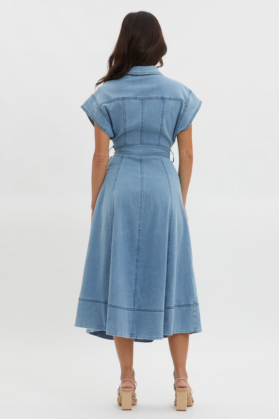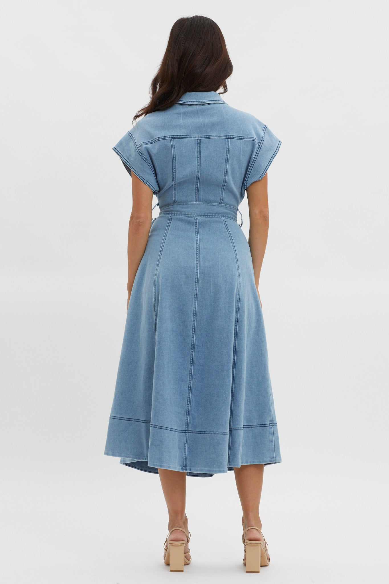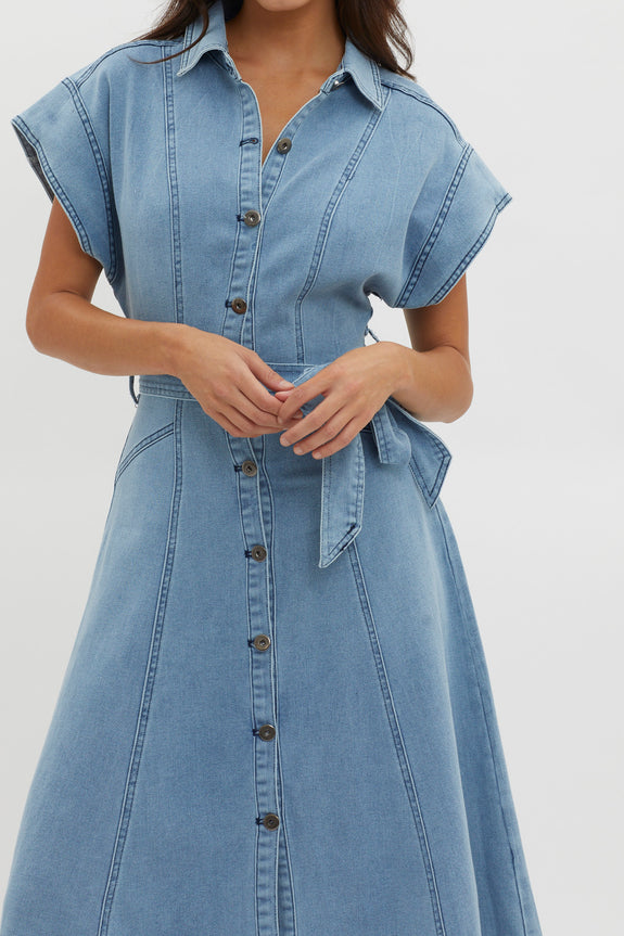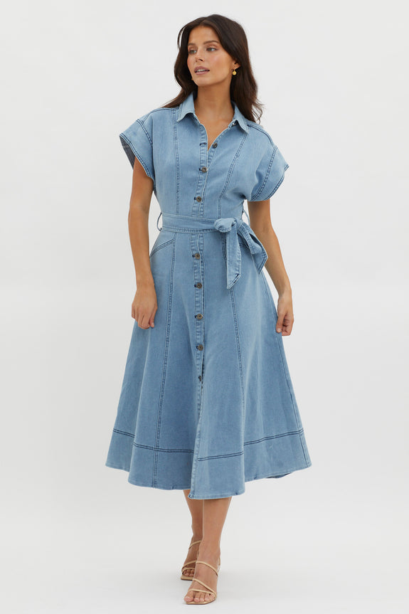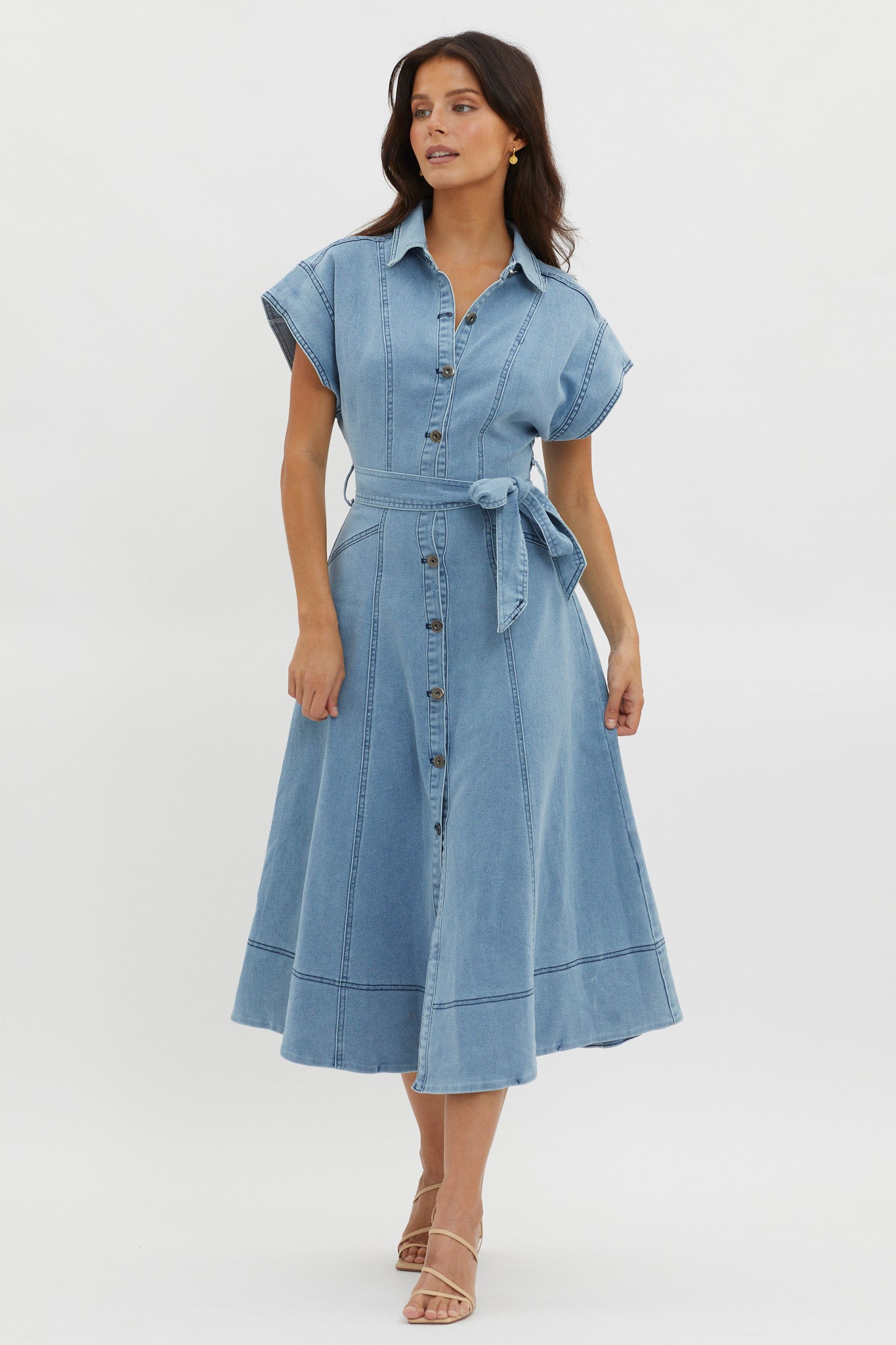 Breeze through your day in our pretty Laureen midi dress. Featuring a removable waist tie and button-up front. It's perfect for a lunch date with your love. Team it with mules and a tote for a chic look that will turn heads.
