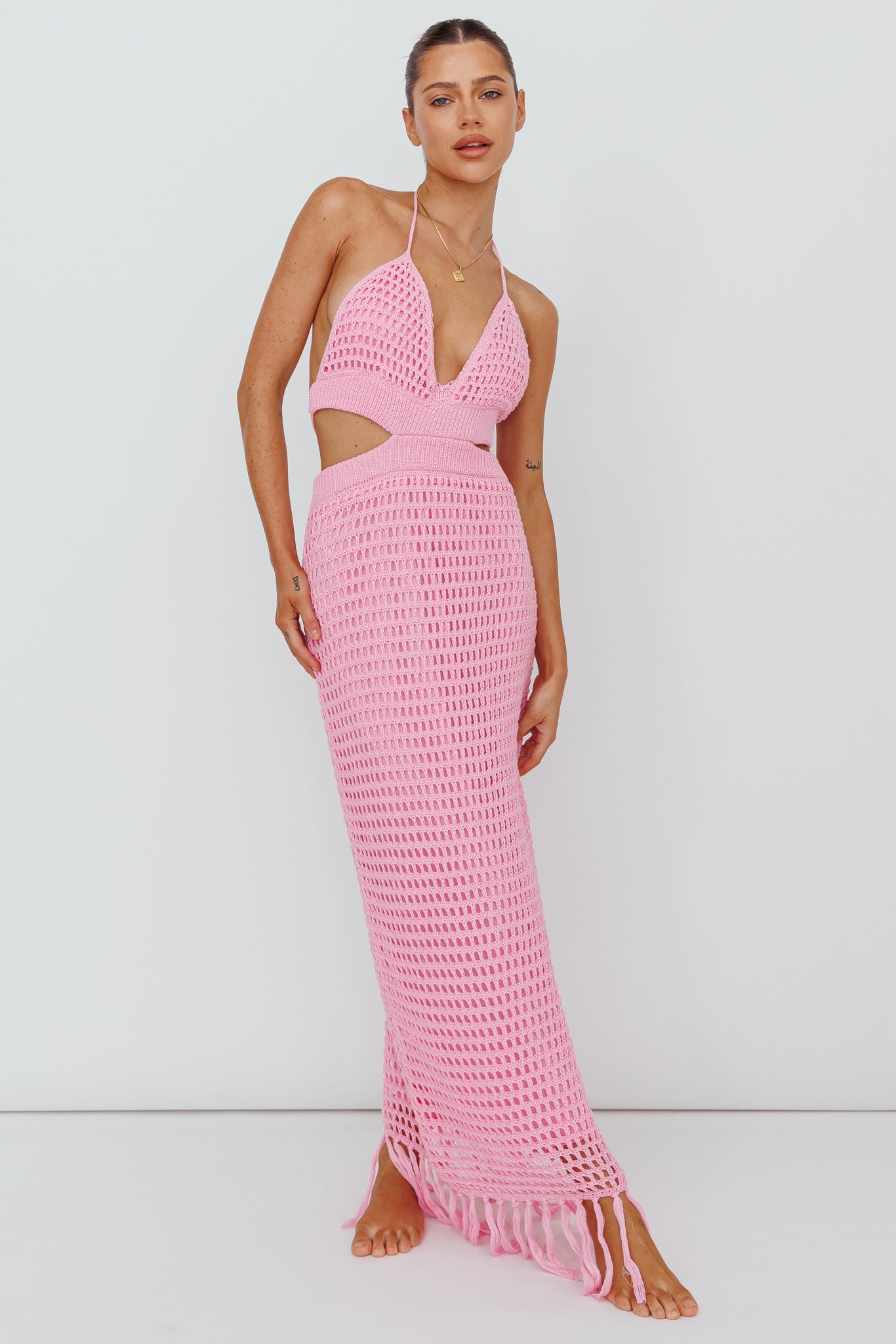 We are totally crushing on our gorgeous Lelei maxi dress. With its crochet knit fabric and open back, this one is sure to turn heads. Perfect for Friday nights at your fave rooftop spot. Team it with hessian wedges and a tote for a beach-chic look we are loving.