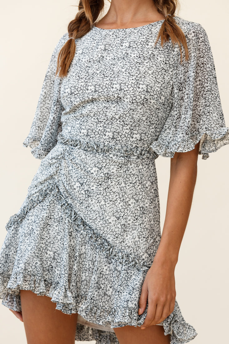 Leona Half Sleeve Frill Trim Dress Floral Print Black
