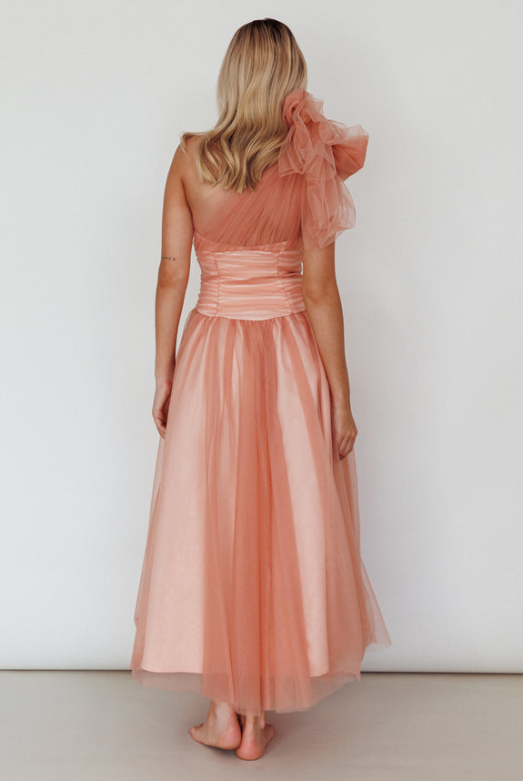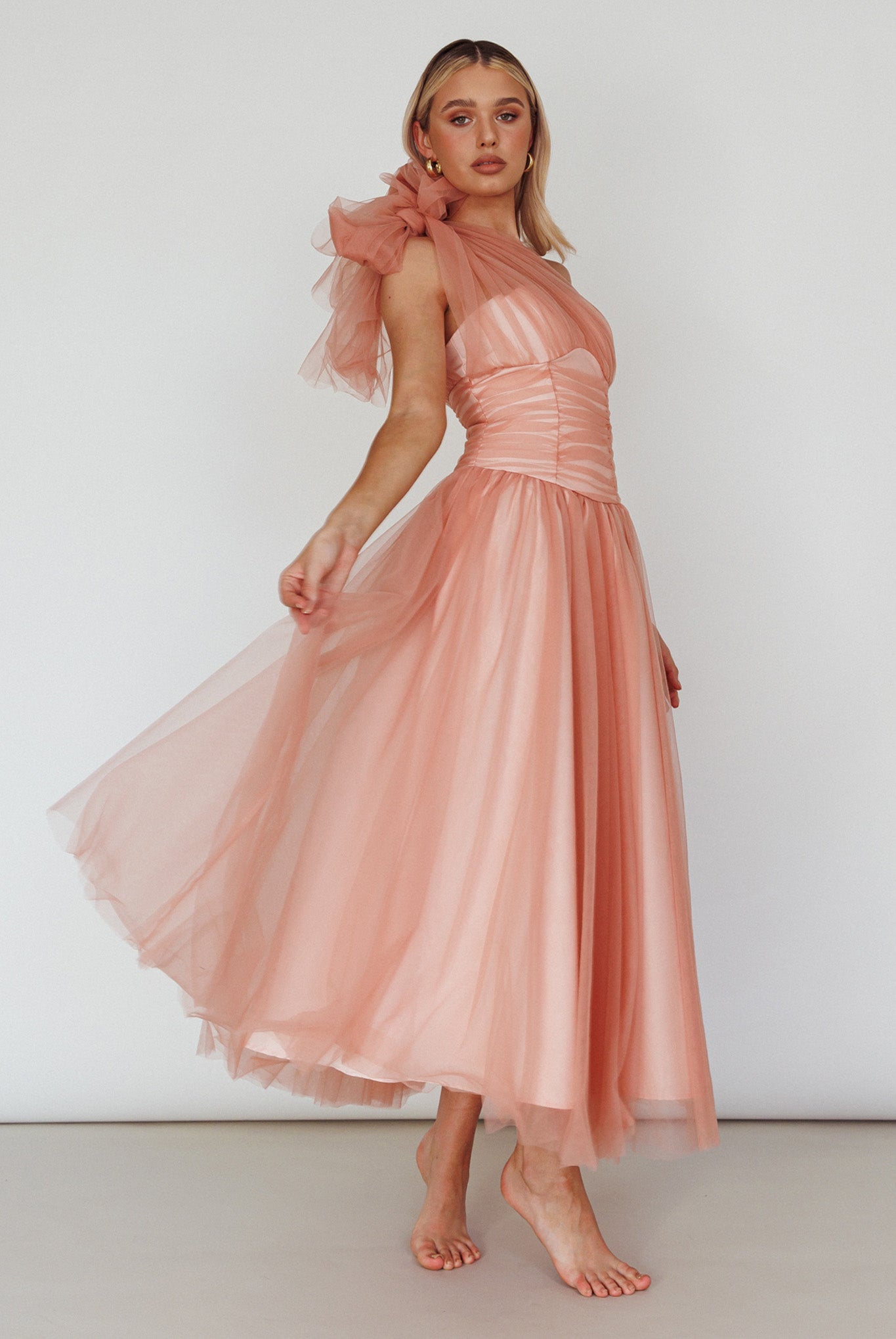 Let's Elope Bow Shoulder Midi Dress Lipstick