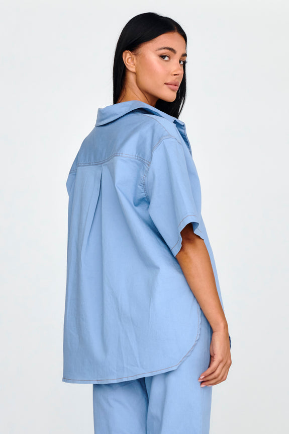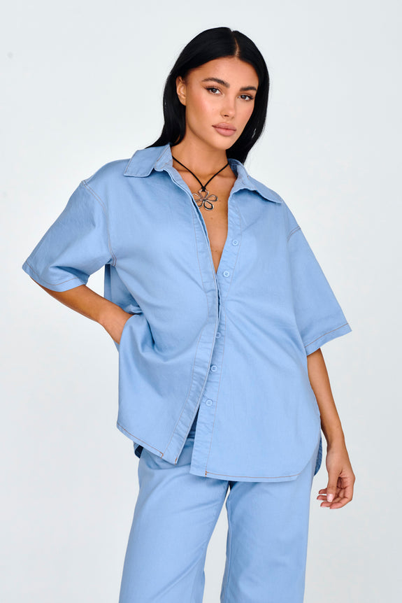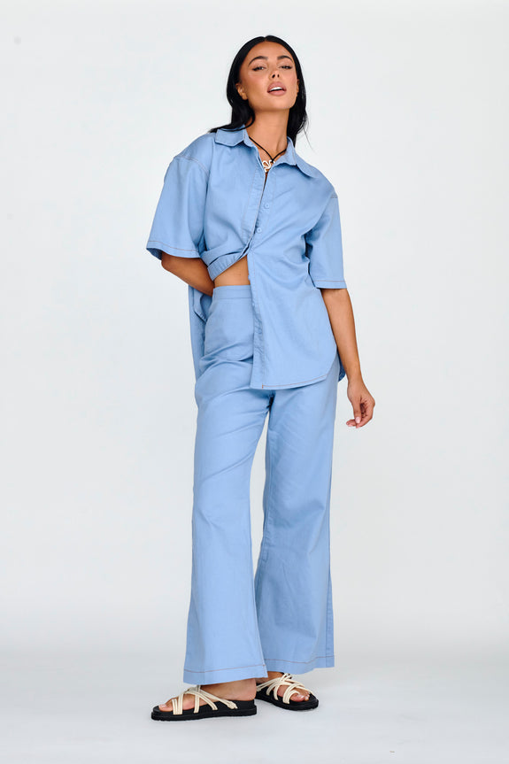 Breeze through your weekend in our chic Light Aura shirt. We are in love with its soft, buttermilk hue and relaxed fit! Whether it's brunch with your girls or running errands, this shirt has you covered. Team it with its matching pants and sandals for a sophisticated look.