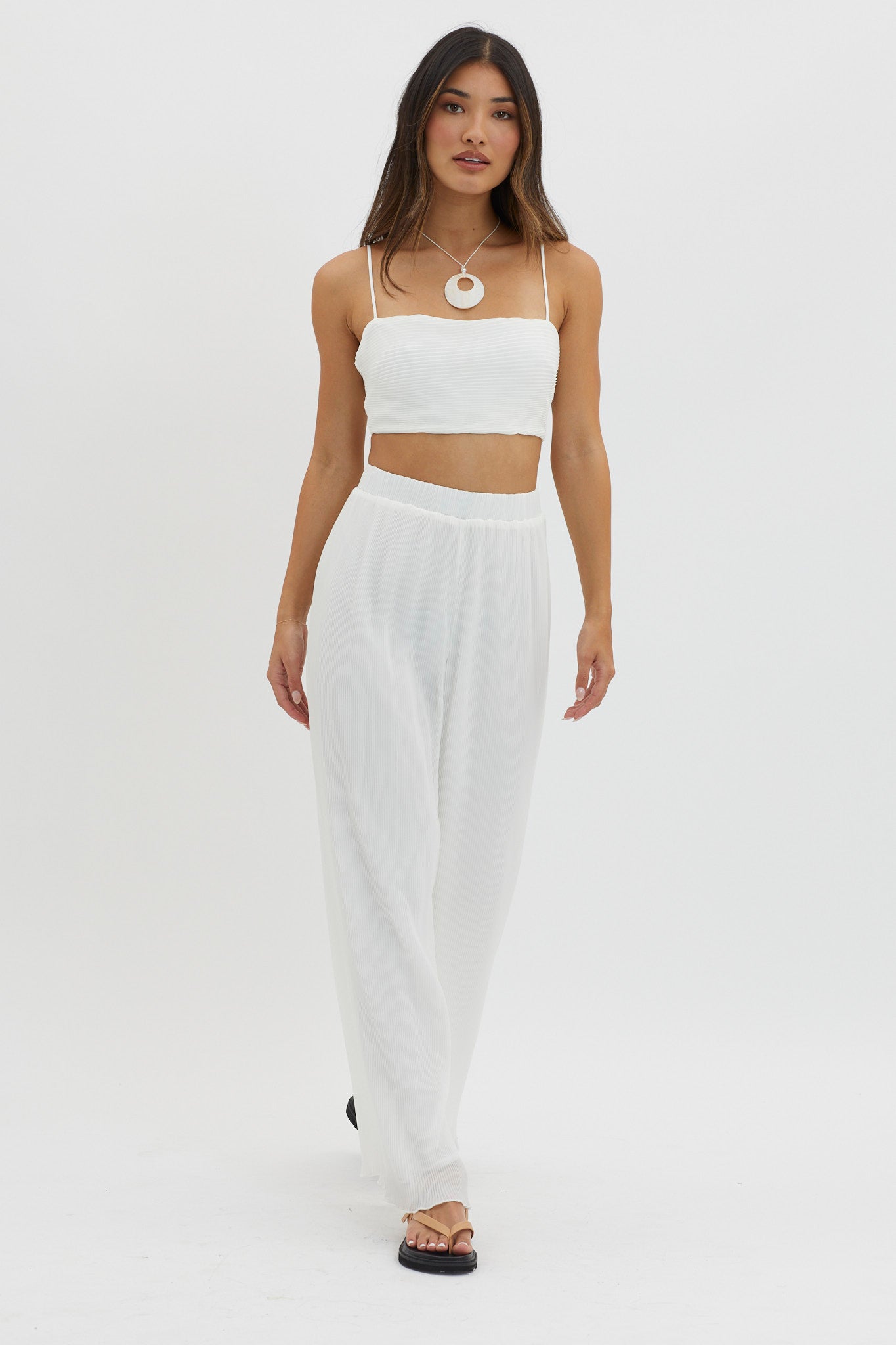 Float through your week in our breezy Light Energy pants. Featuring an elasticated waist and pretty accordion pleat fabric. They're perfect for weekend brunch with your besties teamed with their matching crop top and sandals for a chic look.