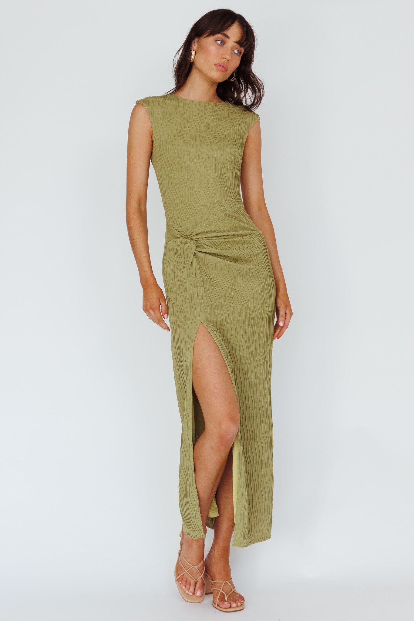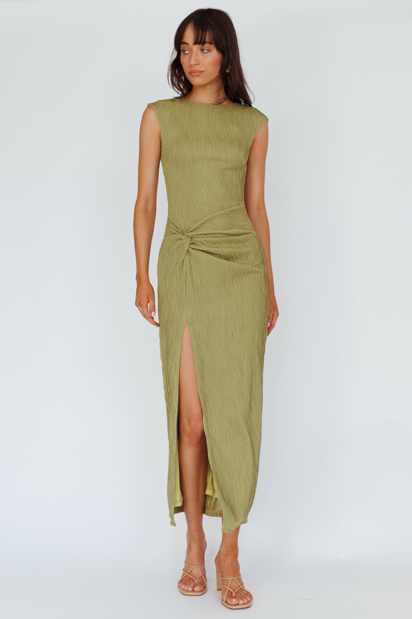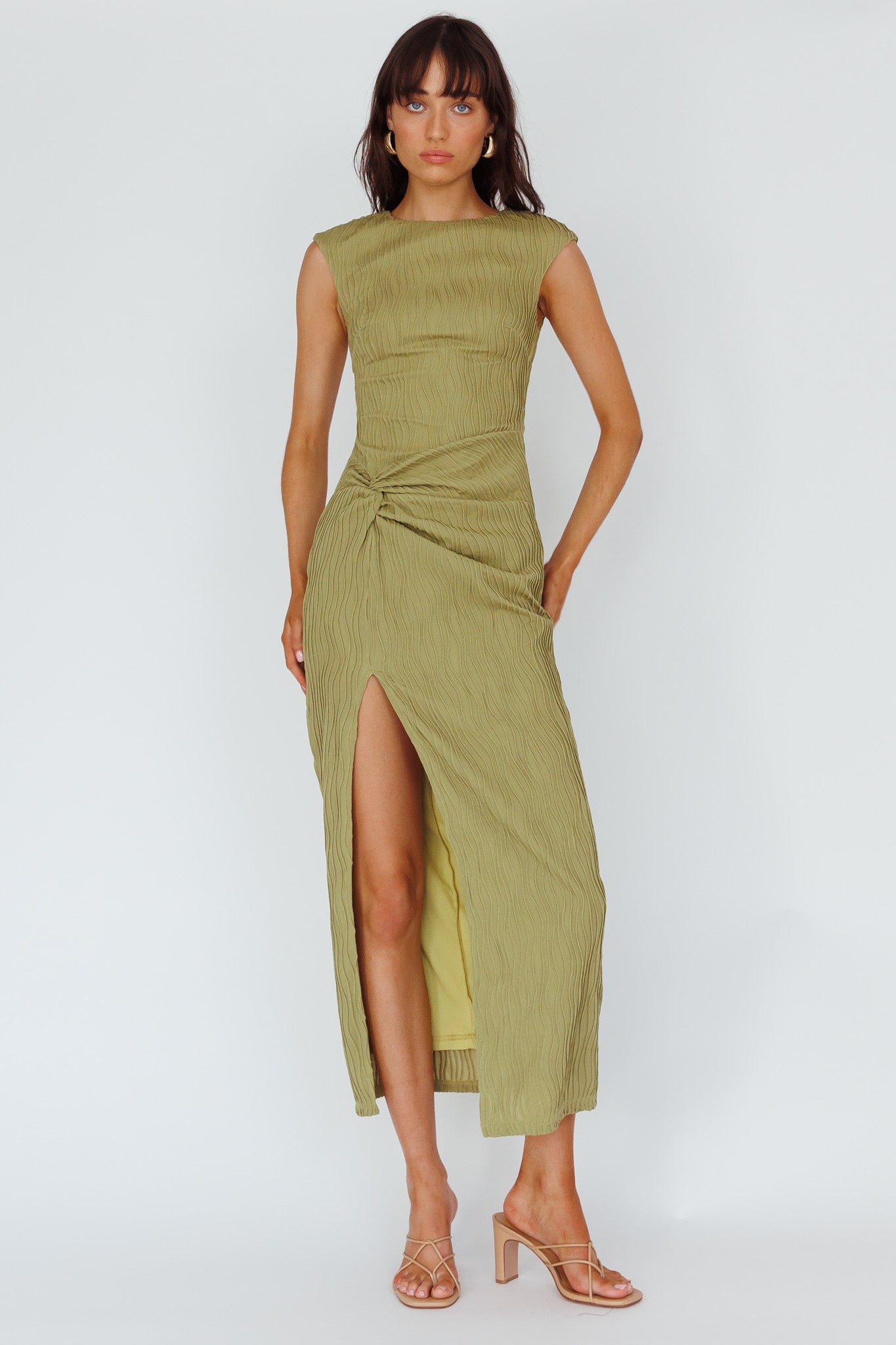- Olive, textured midi dress