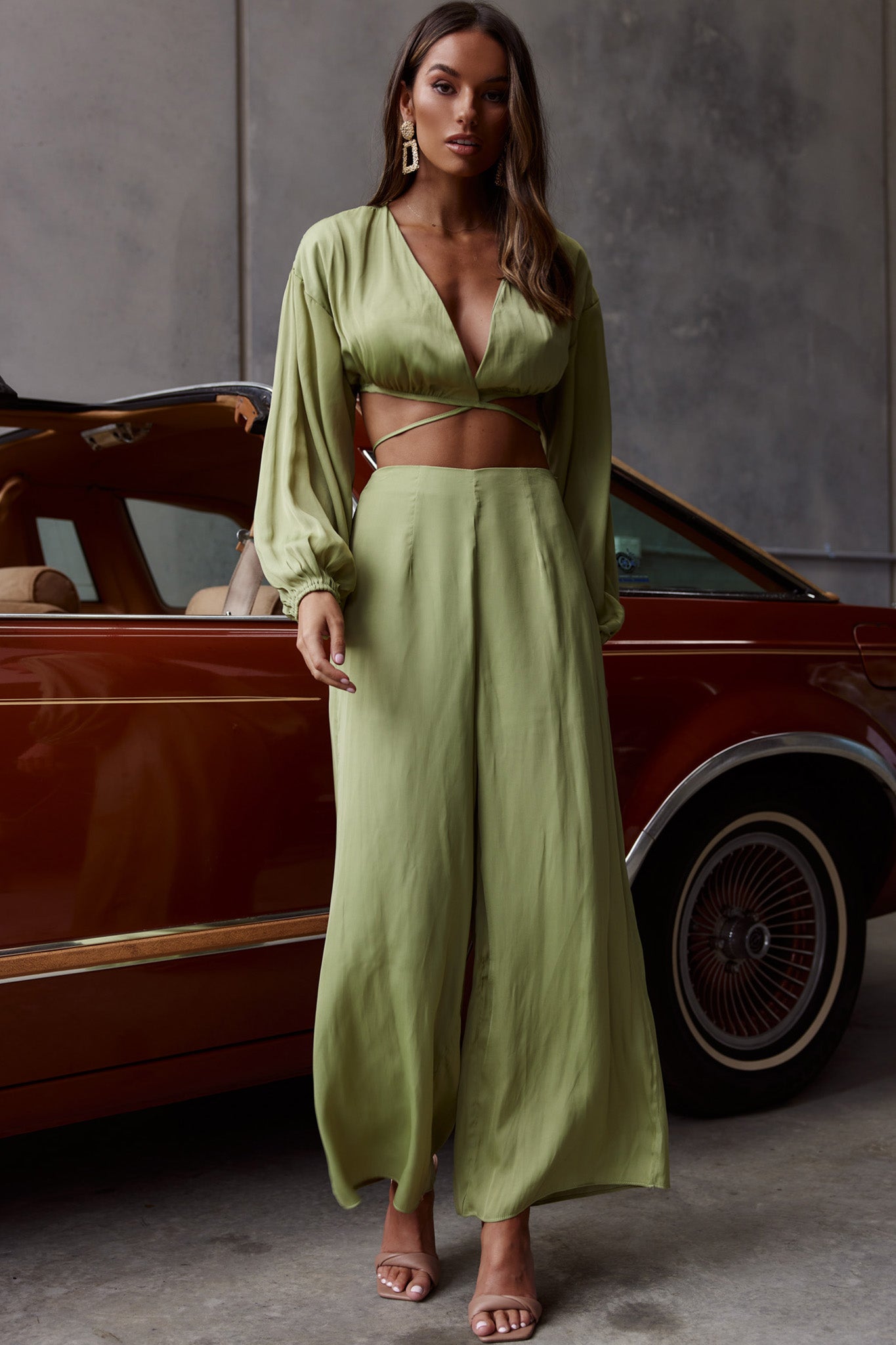 Steal the show in our gorgeous Lilian pants. We are obsessed with their soft, satin fabric and wide leg cut. Perfect for a girls' night out! Team them with their matching crop top and sky-high heels for a look we are loving.
