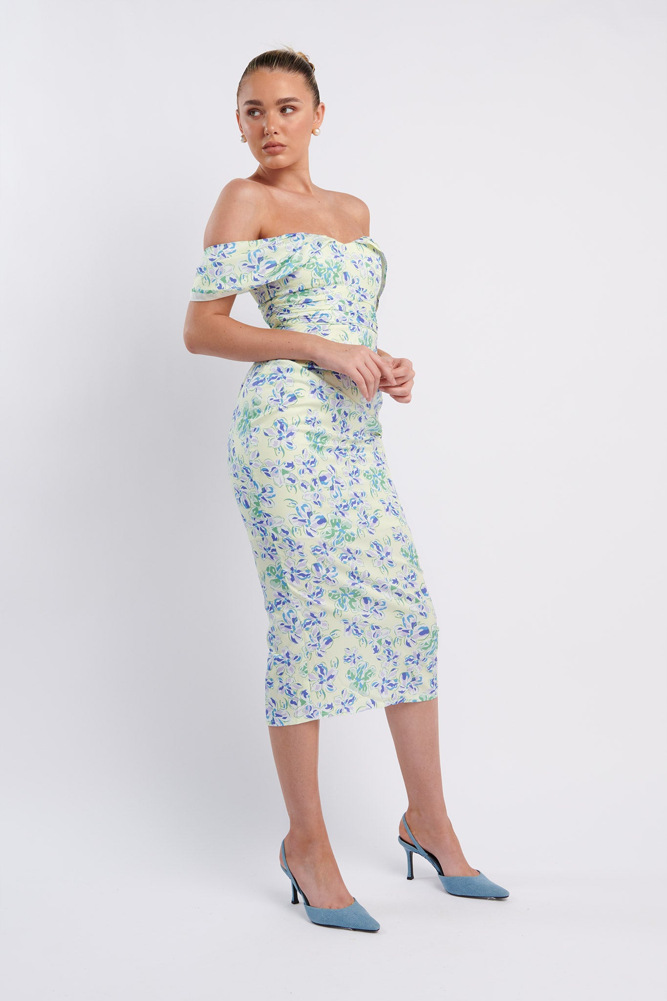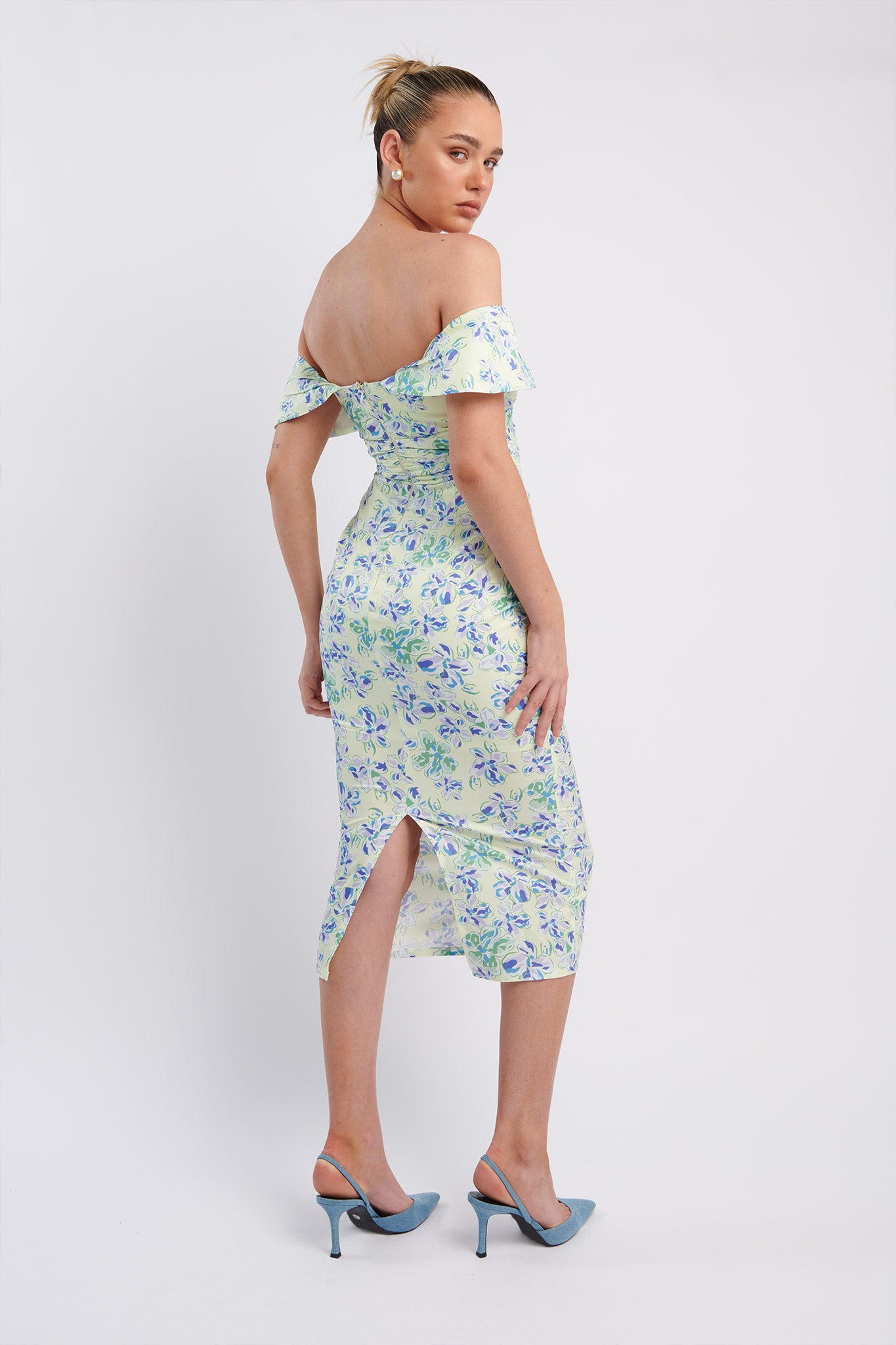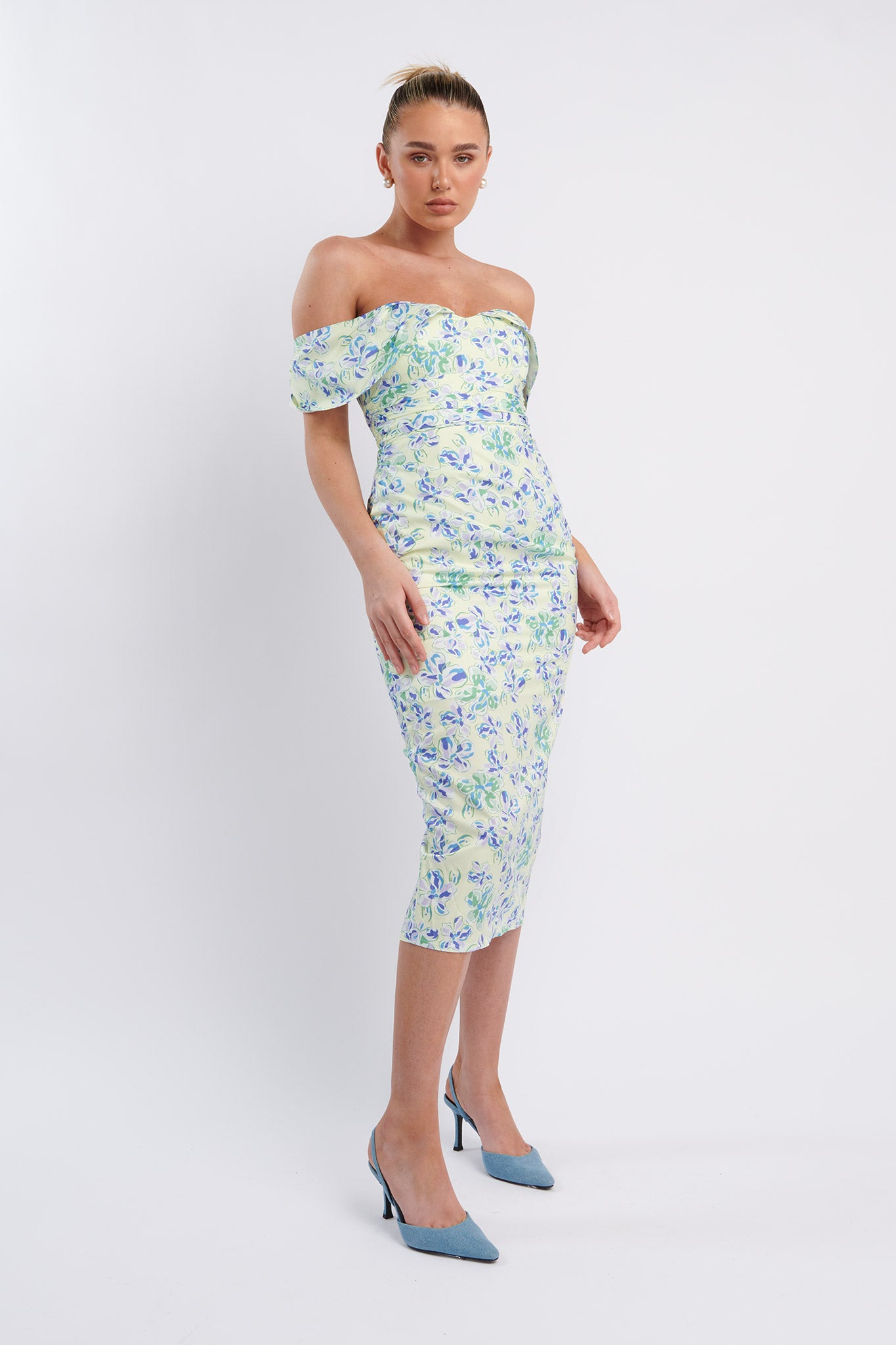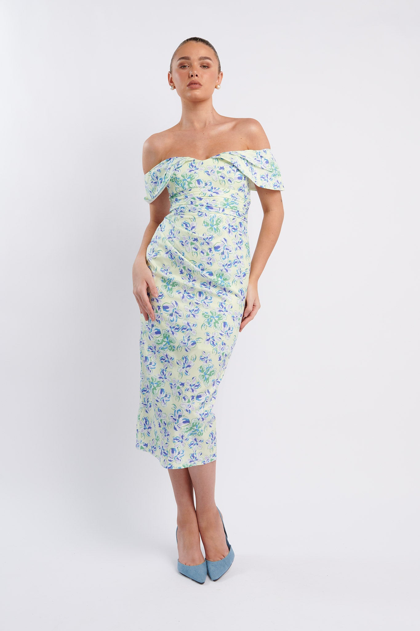 Lillianne Off-Shoulder Midi Dress Floral Blue