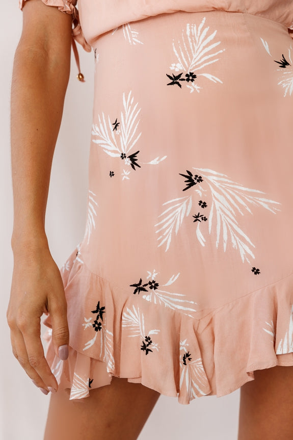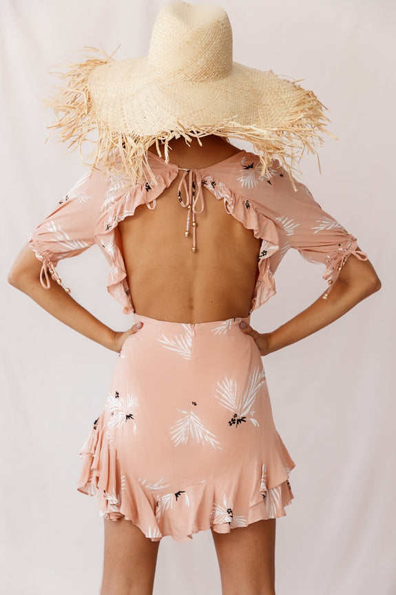 Lilo Surplice Neckline Cut-Out Back Dress Botanic Print Nude