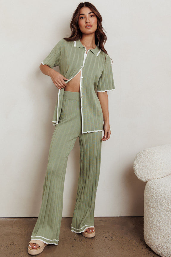 Make a statement in our Liloh knit pants. They're giving quiet luxury and we are loving it. Made with a soft knit with contrast trim, they're perfect for brunch dates with your girls. Team it with its matching shirt and sandals for a chic look.