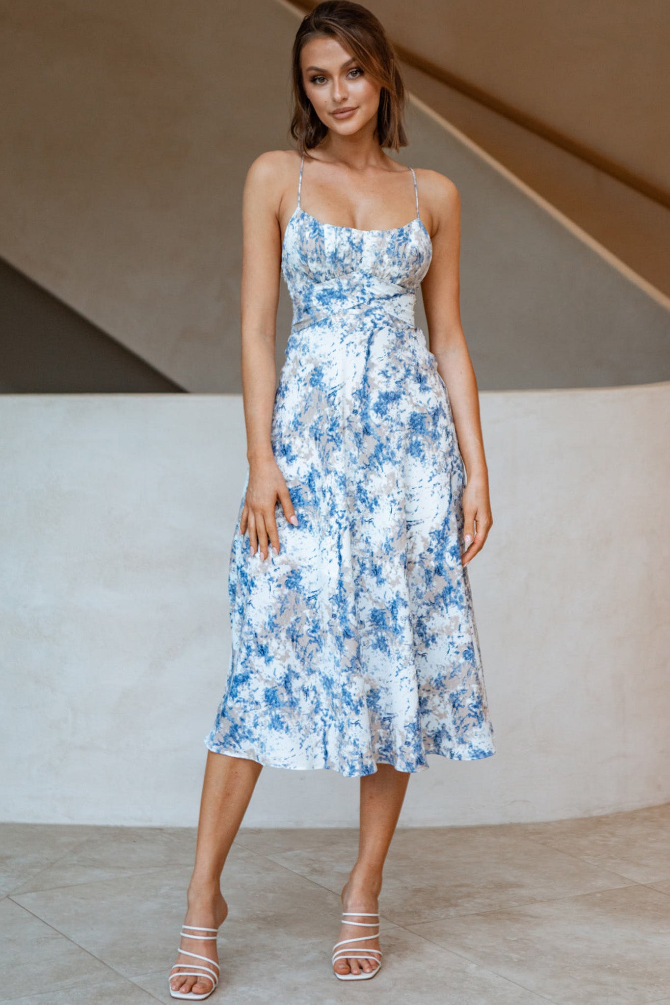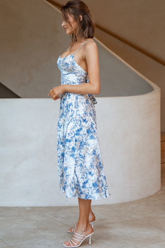 Linka Cami Strap Midi Dress Marble Print Blue