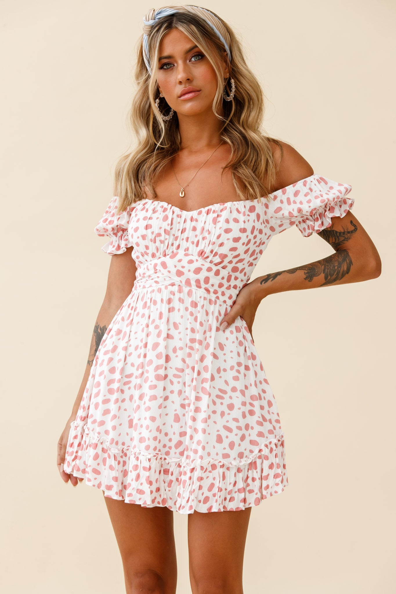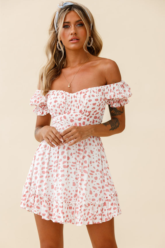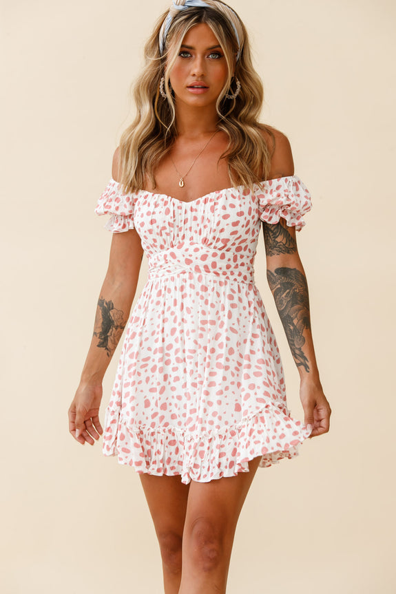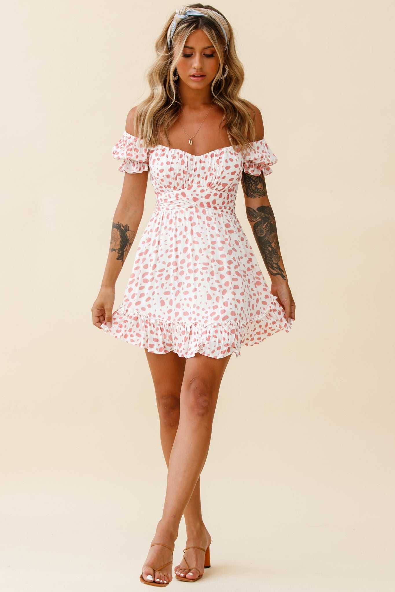 Linka Off-Shoulder Tie Back Dress Spot Print Pink/White
