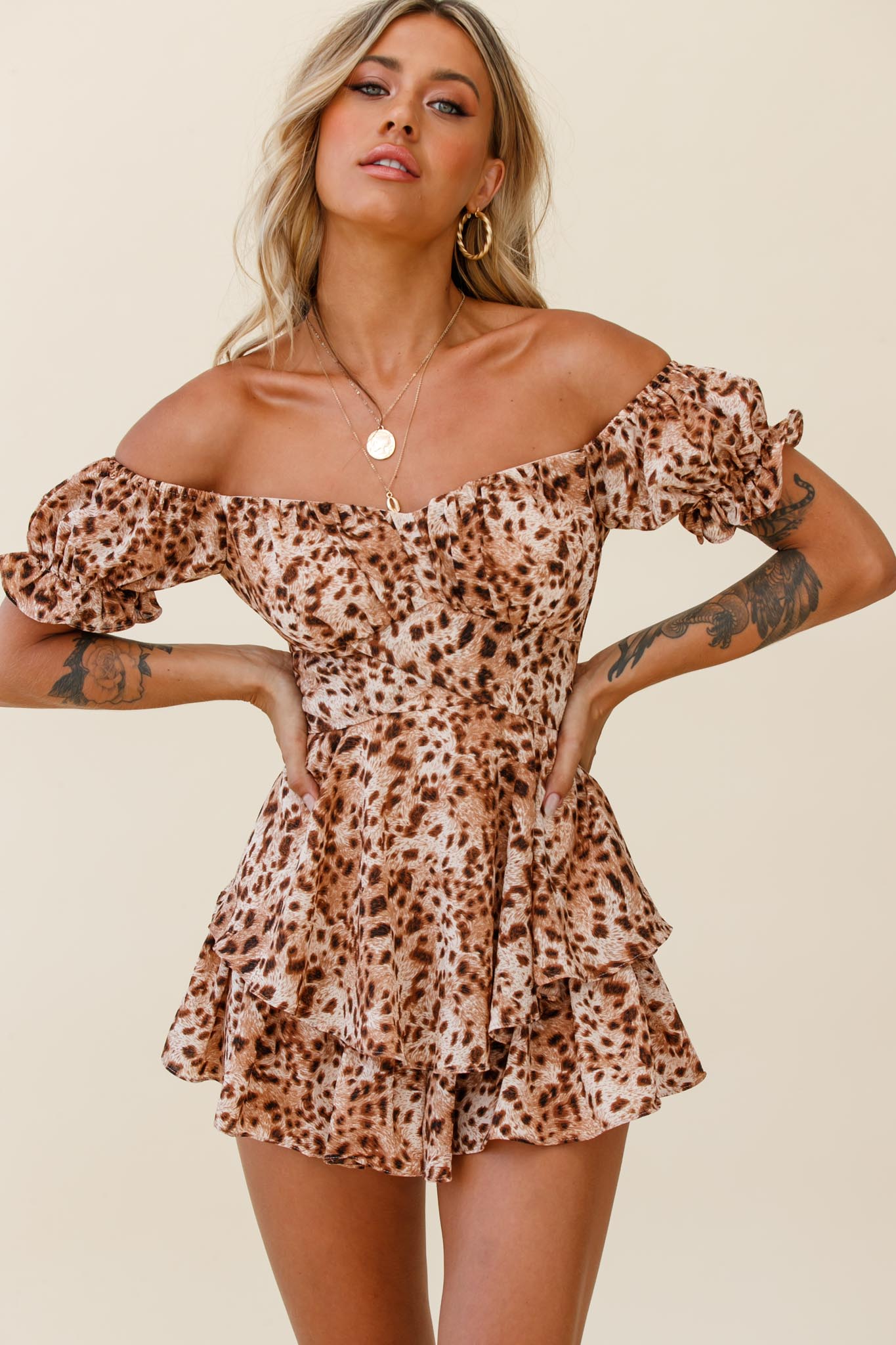 Stop what you are doing because this romper deserves a moment. Jaws will drop when you strut by in our adorable Linka Romper. Featuring an off-shoulder style and the cutest puff sleeves, we're in love! Perfect for a girls' night out paired with sky-high heels and statement earrings. Hello, gorgeous!