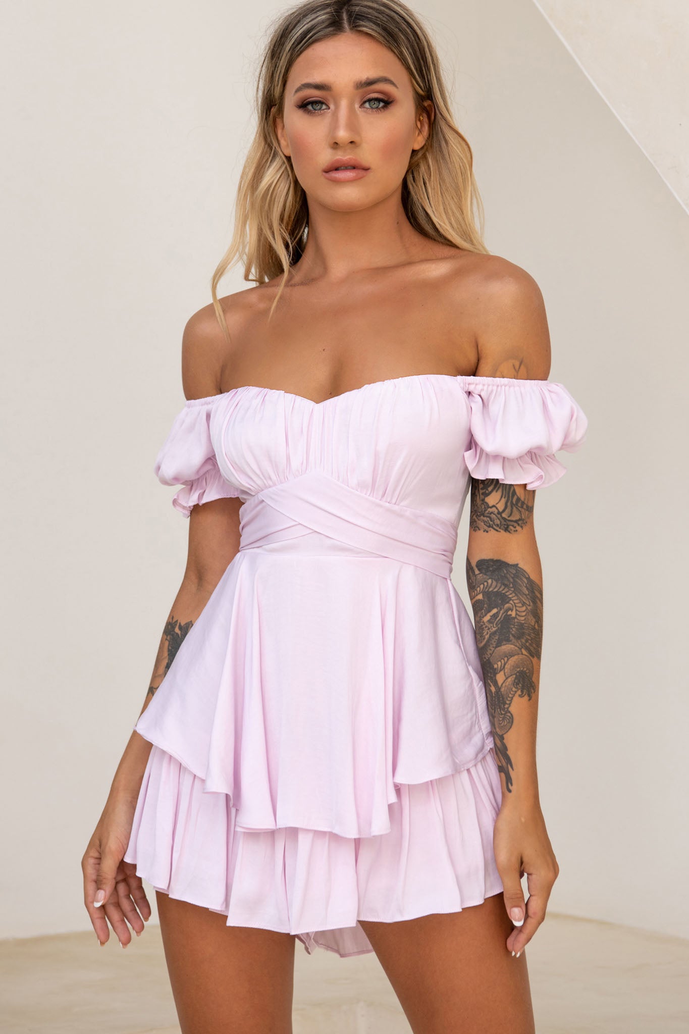 Linka Off-Shoulder Tie Back Romper Light Lilac