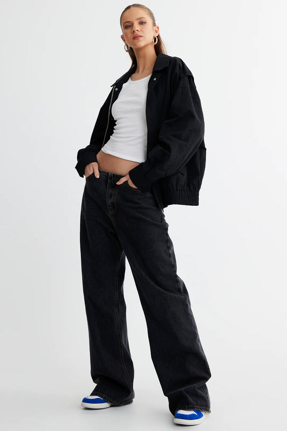 We are obsessed with the Kenny jacket by LIONESS. Featuring a zipper front and elasticated hem, it's perfect for everyday wear. It looks amazing with wide-leg jeans and pointed-toe boots for a night out with your girls!