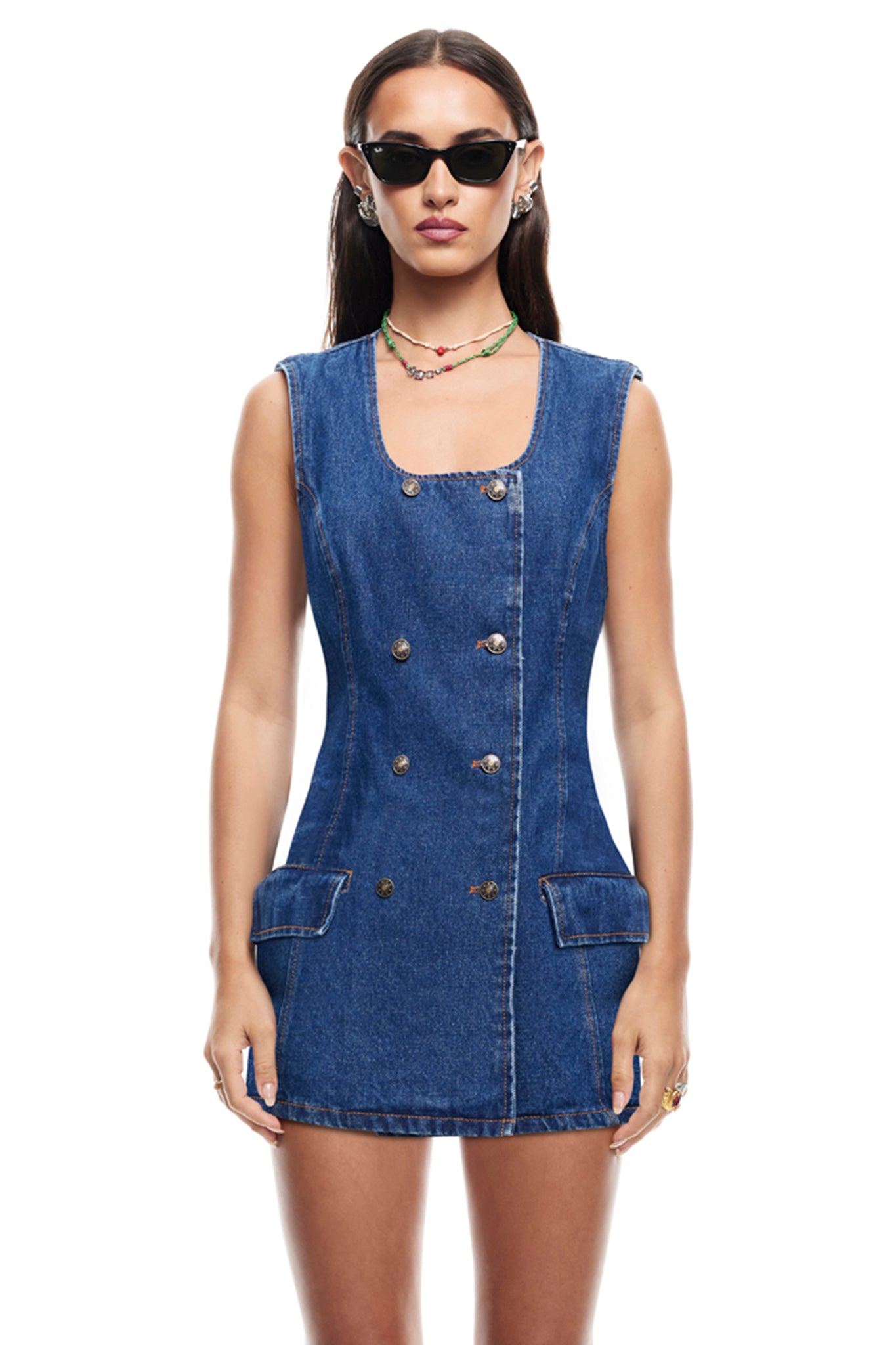 You will steal the show in the gorgeous L'Esprit mini dress by LIONESS. We are majorly crushing on its double-breasted button design and it has pockets! Perfect for a fun girls' night out teamed with boots for an It Girl look.