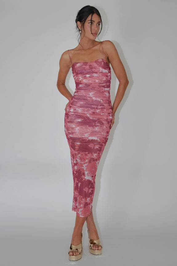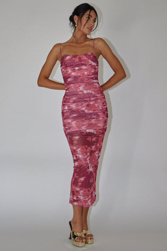 Logan Strapless Ruched Midi Dress Print Wine