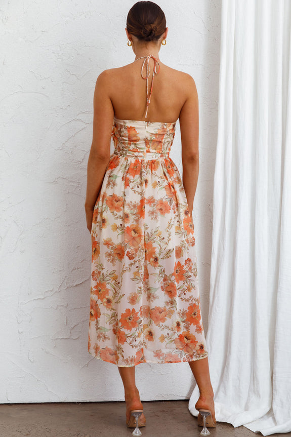 We've fallen head over heels for our dreamy Los Feliz dress. Featuring the prettiest tied bust and halterneck style, you'll be flooded with compliments! Perfect for Sunday brunch with your besties or a garden wedding. Team it with tan mules to complete the look.