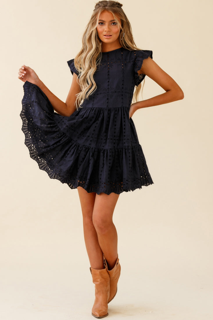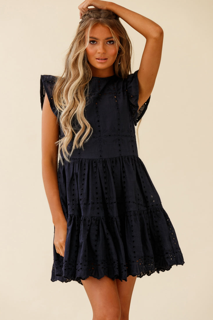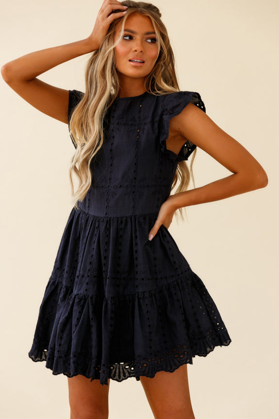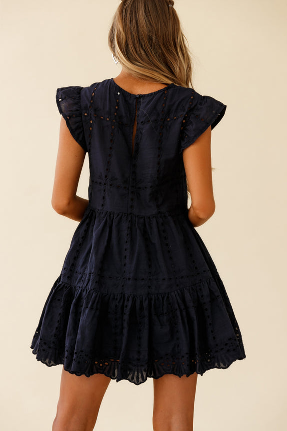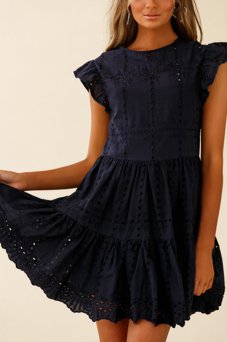 Louise Cap Sleeve Eyelet Embroidery Dress Navy