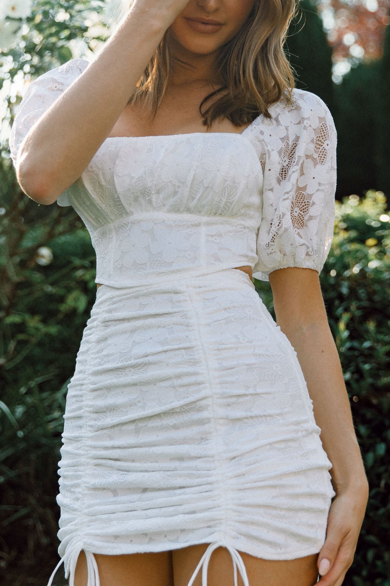 Sweep them off their feet in our gorgeous Love Song crop top. The square neckline is super flattering and we are obsessed with its dreamy floral lace. Perfect for a romantic date with your prince charming teamed with its matching skirt and tan mules.