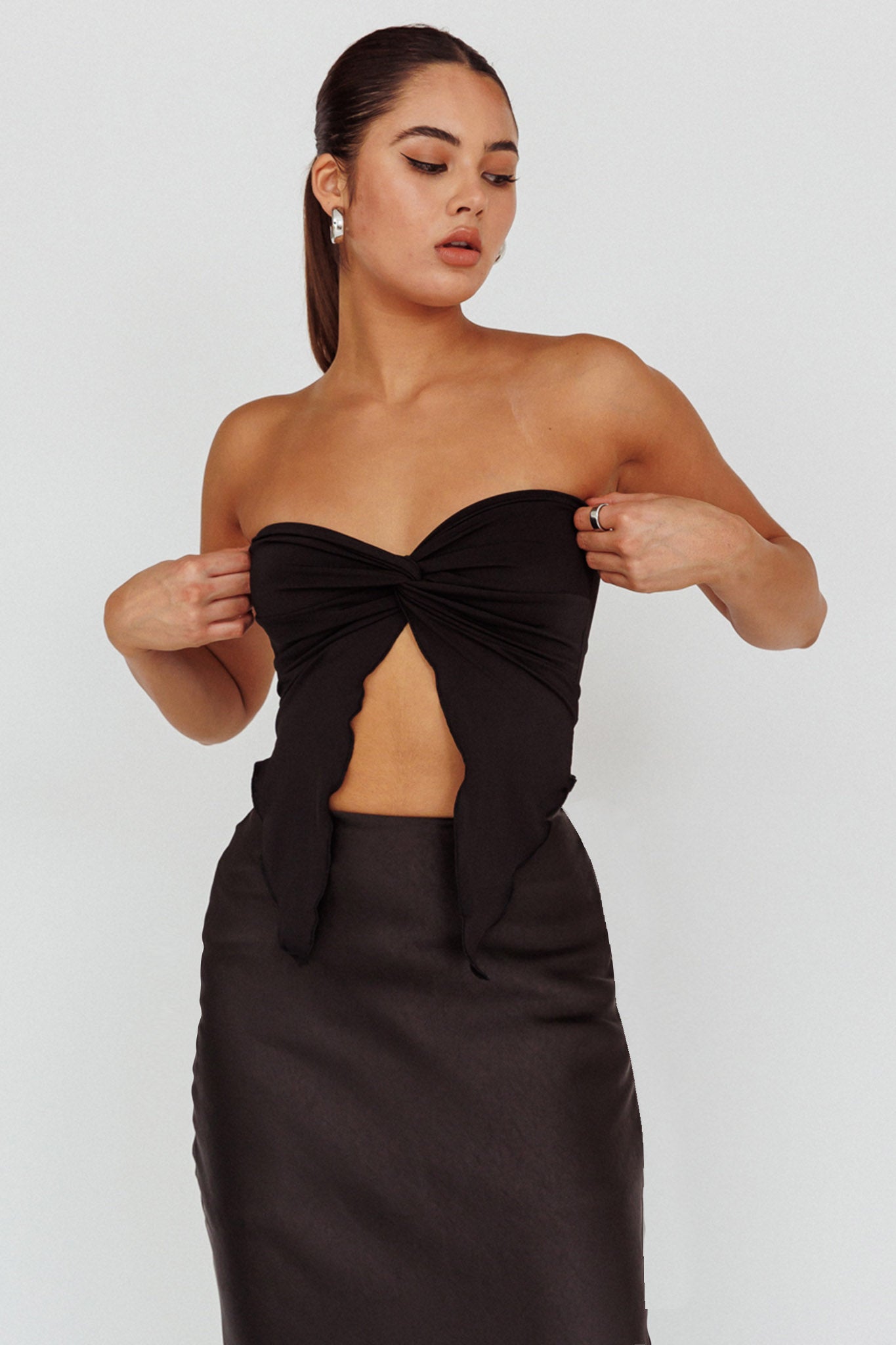 Turn heads in our super cute Lulu crop top. We are in love with its on-trend hue and twist detail in the bust. Perfect for a girls' night out. Team it with a mini skirt and boots for a hot look we are loving.