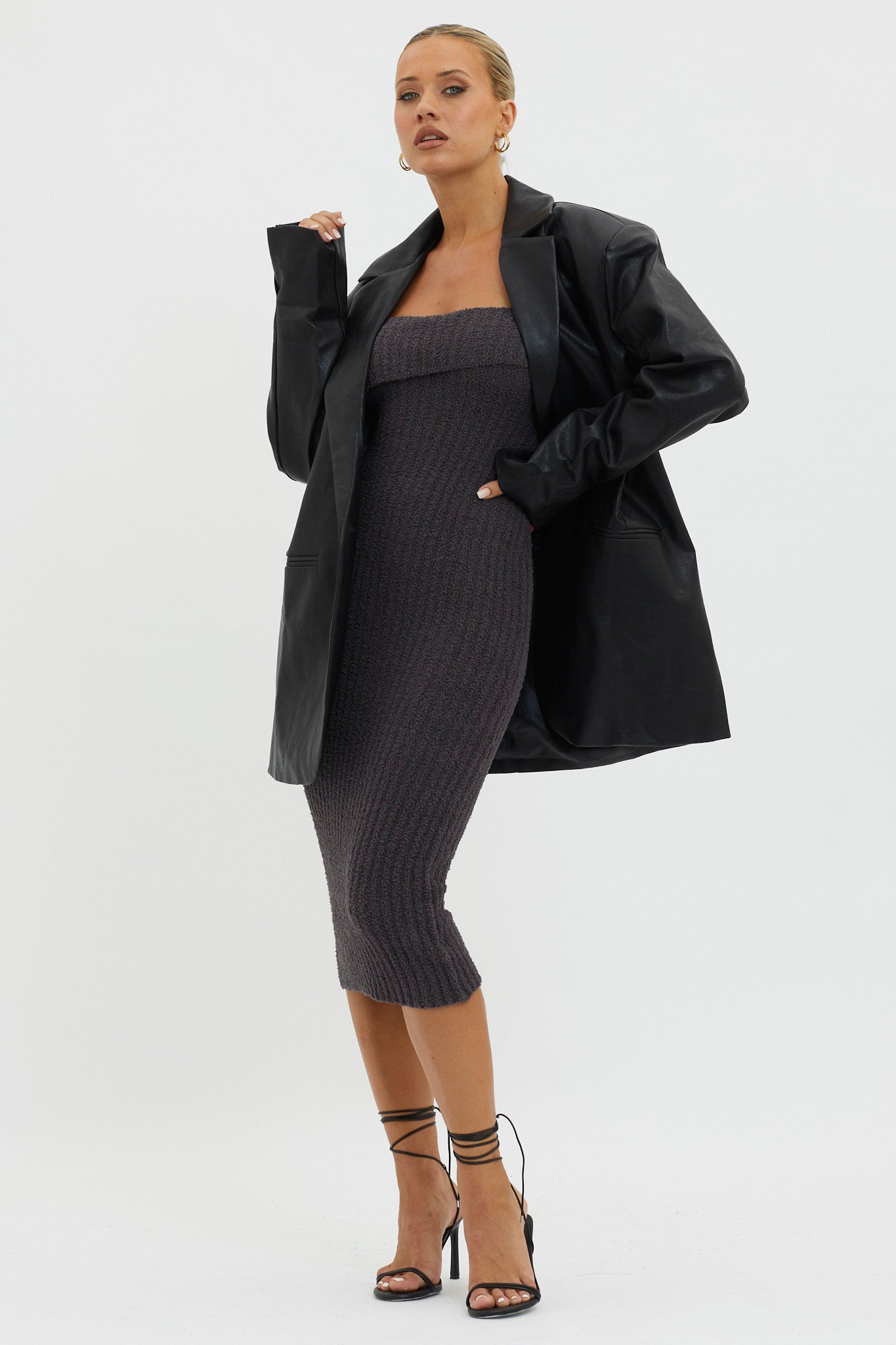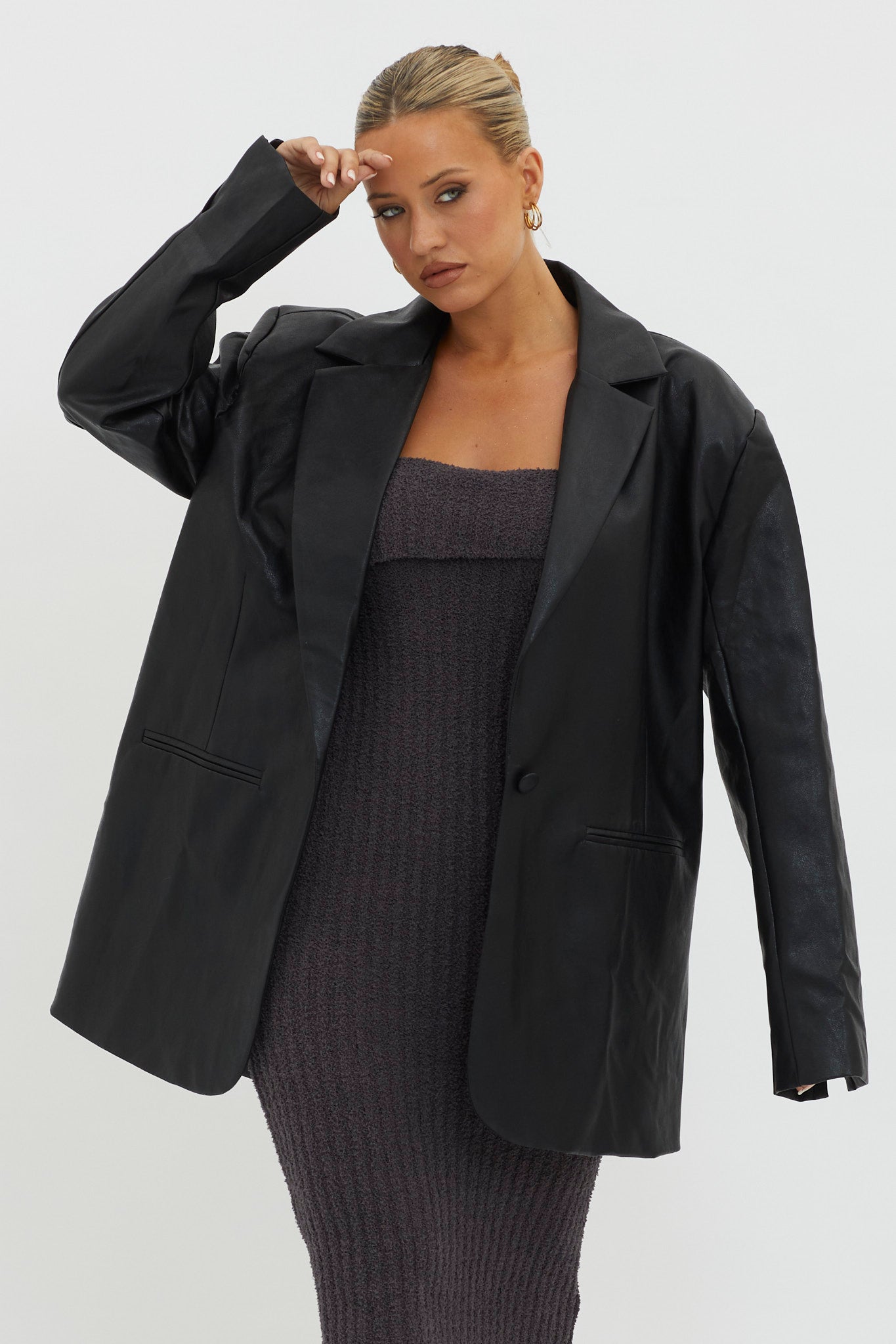 You'll go straight to the best-dressed list in our chic Luminate jacket. Featuring a notch lapel and oversized fit, it's perfect for a girls' night out. Team it with a mini skirt and boots for an on-trend look we are loving.