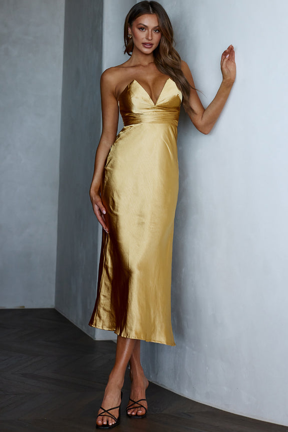 You'll go straight to the best-dressed list in our Ma Jolie midi dress. We are in love with its chic neckline and sexy thigh split. Perfect for bridal events or a birthday soiree teamed with strappy heels and a clutch.