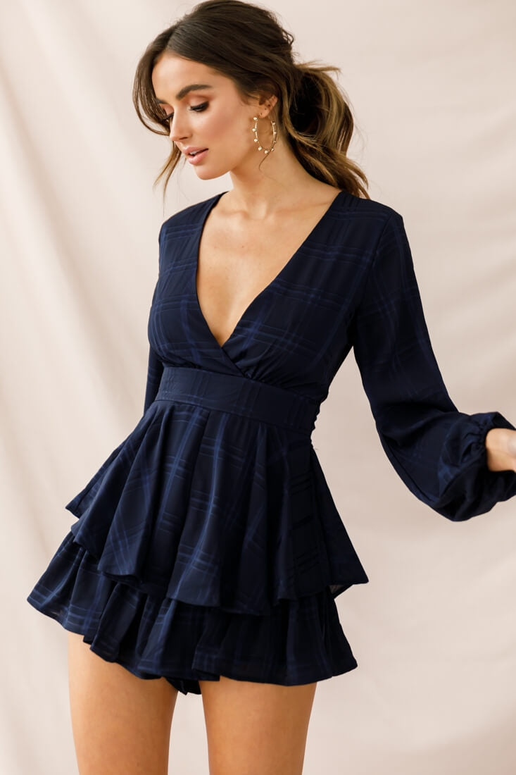 Get ready for some double takes as you strut your stuff in our Maddox romper. Featuring soft, delicate fabric, layered ruffle skirt, balloon sleeves and V-neckline, this romper is feminine-chic and perfect for day or evening events. Team it with strappy heels and delicate gold accessories.