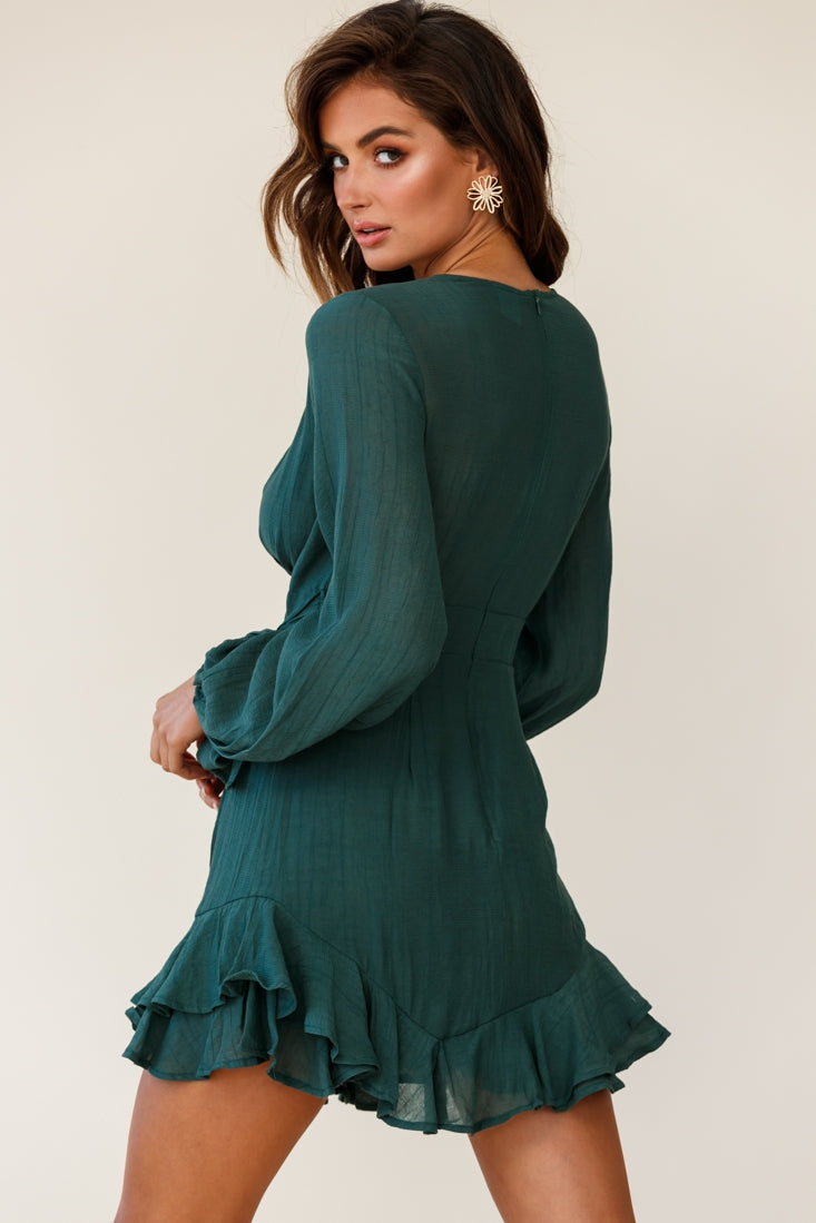 Get ready for some double takes as you strut your stuff in our Maddox dress. Featuring soft, floaty fabric, double layered ruffle hem, long sleeves and deep V-neckline, this romper is feminine-chic and perfect for day or evening events. Team it with nude heels and delicate gold accessories.