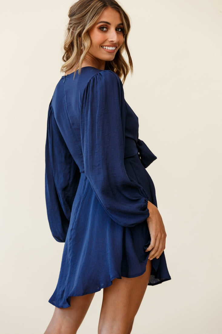 Madison Bow Tie Bust Balloon Sleeve Dress Navy