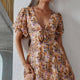 Madison Bow Tie Bust Puff Sleeve Dress Floral Green