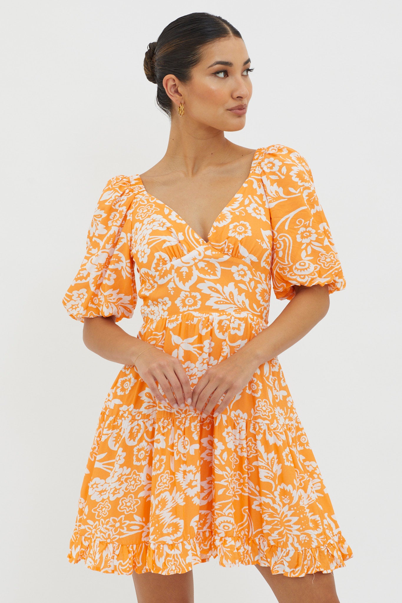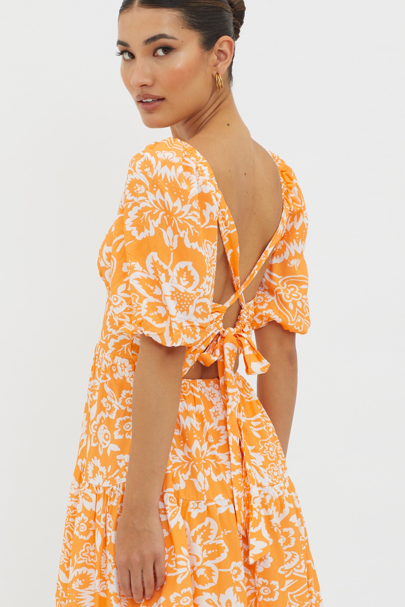 Madrid Summer Tied Back Mini Dress Print Orange