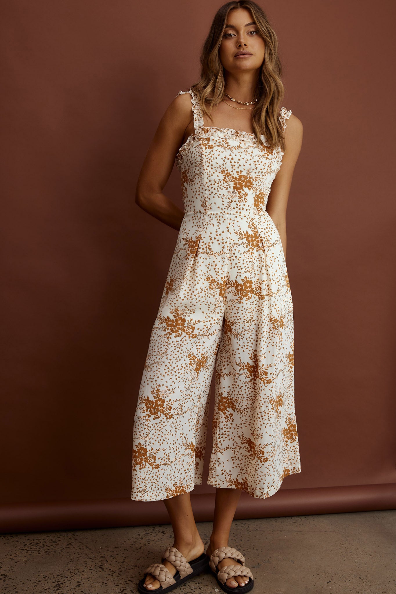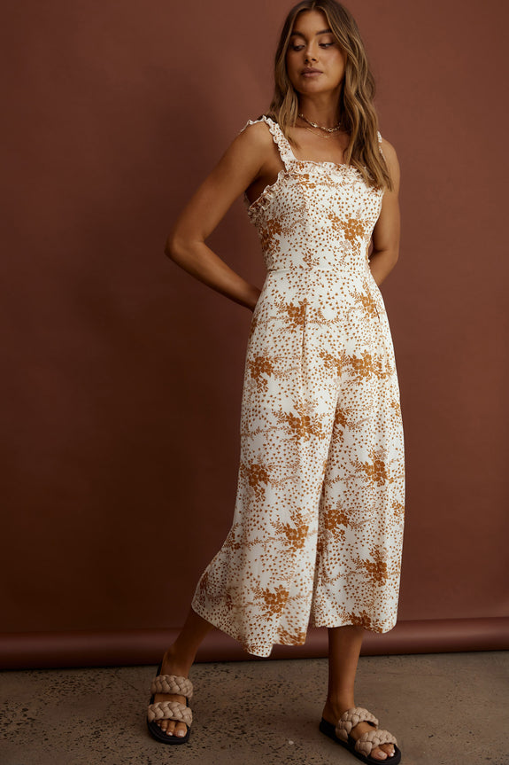 You'll feel like packing for a weekend escape in our Magdalene midi jumpsuit. Featuring the cutest frill straps and shirring in the back for a comfortable fit. We are loving the on-trend wide leg style. Pair it with a straw tote and sandals for a casual-chic look that'll have you dreaming about a road trip to wine country.