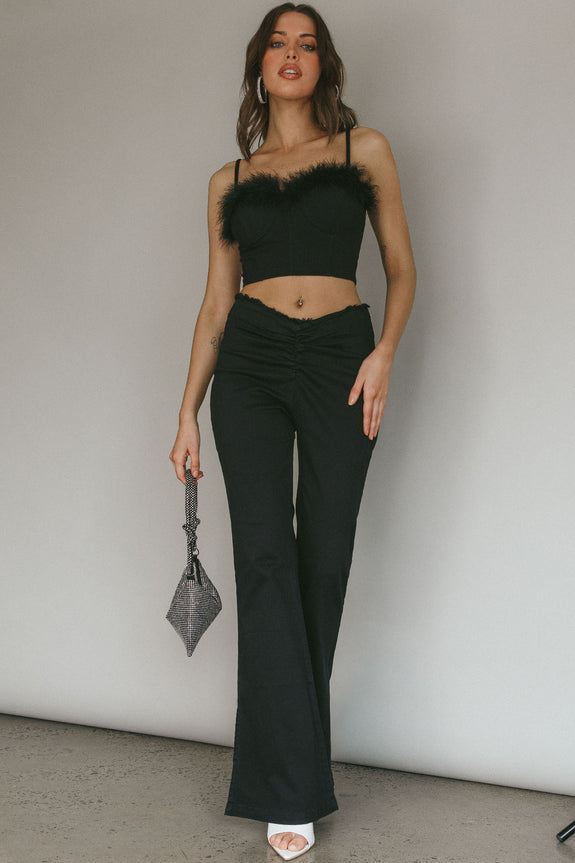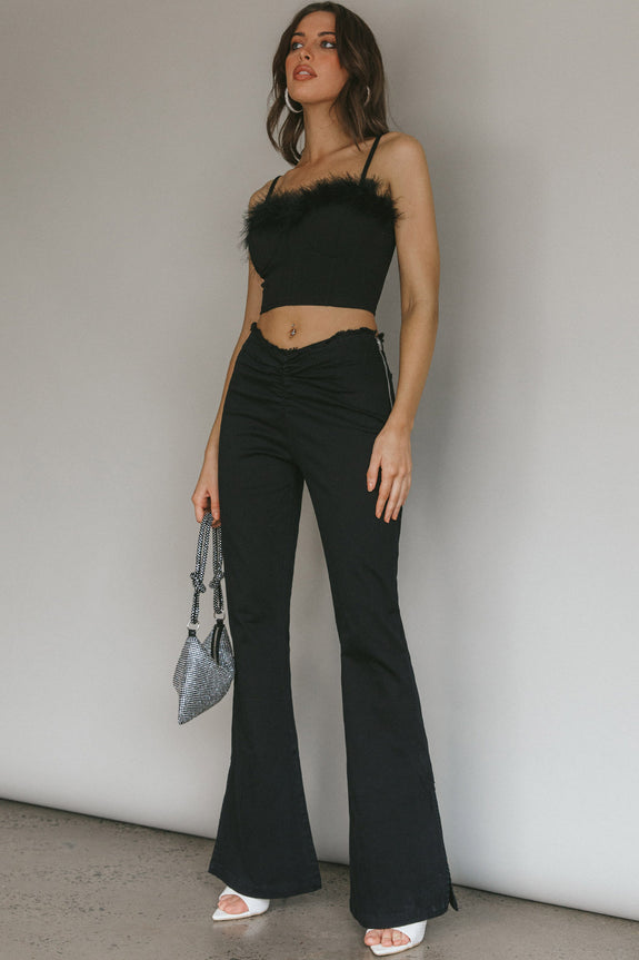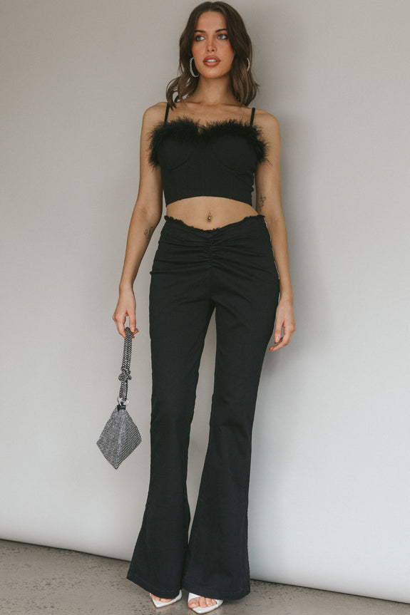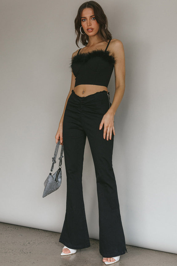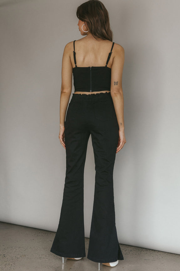Hello, queen! You will be turning heads in these on-trend flare pants. Our Mahla pants feature a flared leg and unique raw edge along the waist. Perfect for weekend lunch dates with your besties or a movie date with your lover. Team it with a satin, crop blouse for a look that will send you straight to the best-dressed list.
