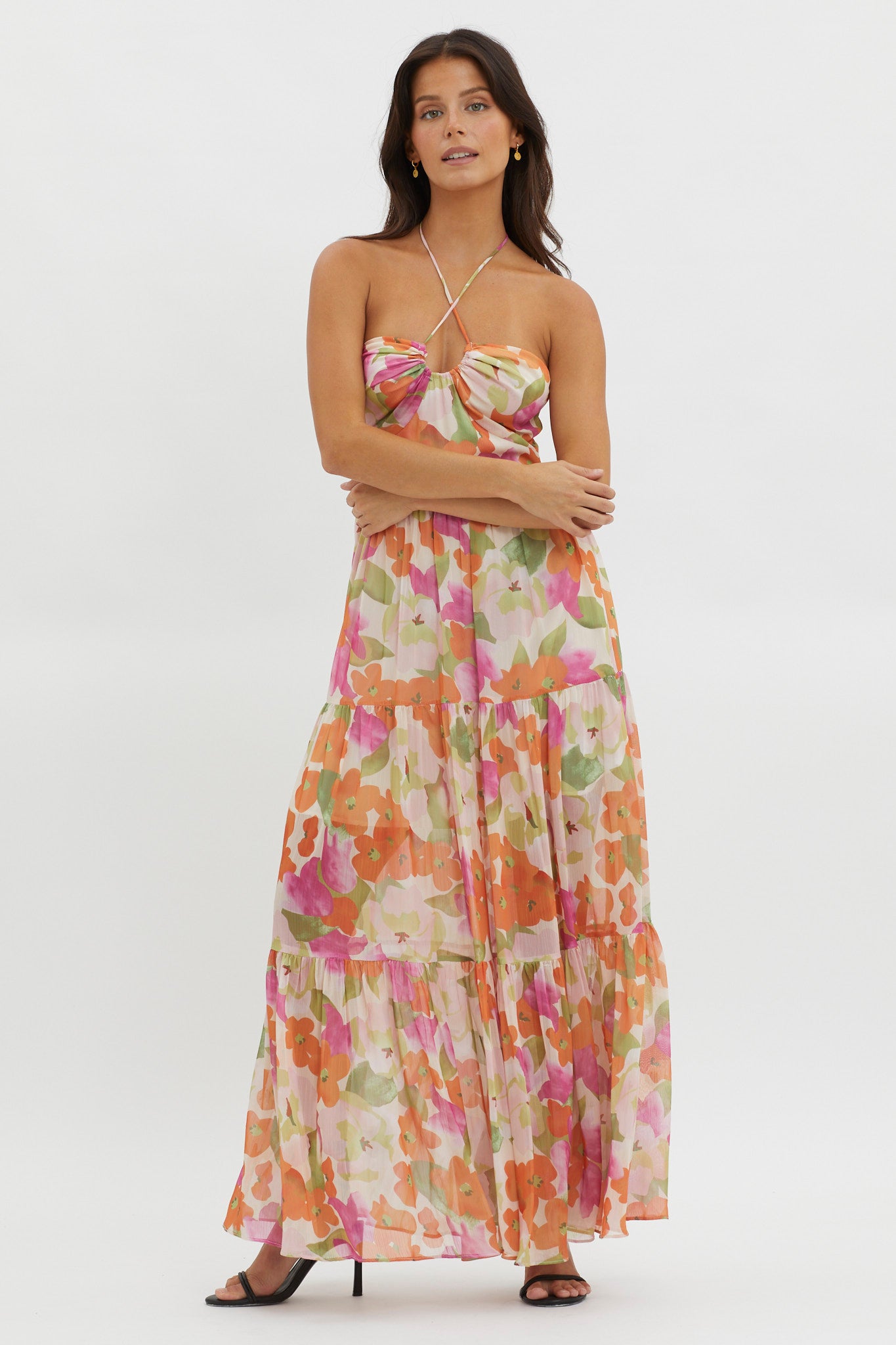 Steal the spotlight in our Main Attraction maxi dress. Perfect for dinner and cocktails with your girls, we are in love with its chic silhouette and pretty floral print! Team it with a tote and mules for a look that will turn heads.