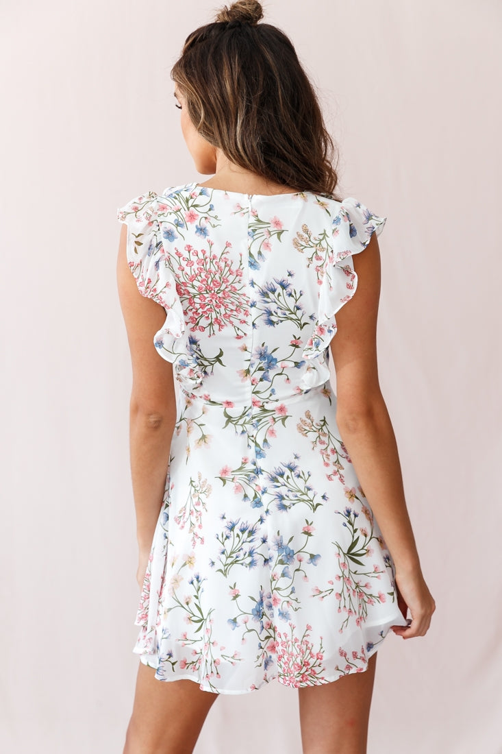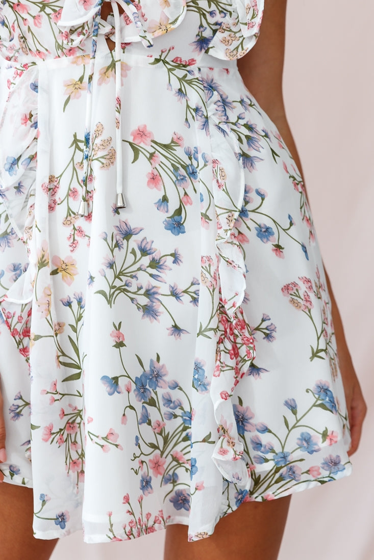 Fall in love with our super sweet Maison dress, featuring a lace-up, deep V-neckline, ruffle trim and breezy chiffon fabric. This feminine dress was made for Sunday strolls at the Farmers' Markets or ice-cream dates with bae. Team it with tan mules and a straw tote for a look that will turn heads.