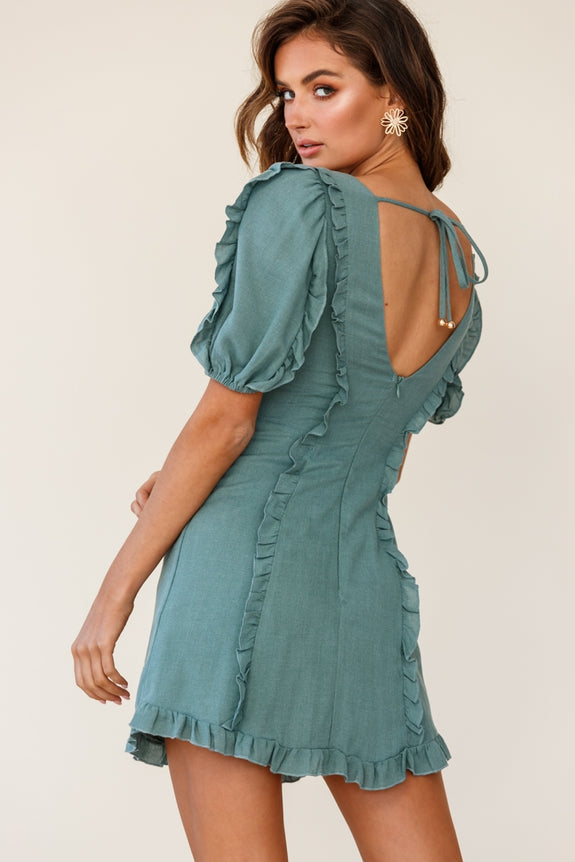 Hey there, cutie! You are lookin' good in our adorable Maisy dress. Perfect for a flirty first date to the movies, it features puff sleeves, a deep, rounded V-neckline, and frill trim throughout. Team it with boots and gold hoop earrings for a look we are loving.