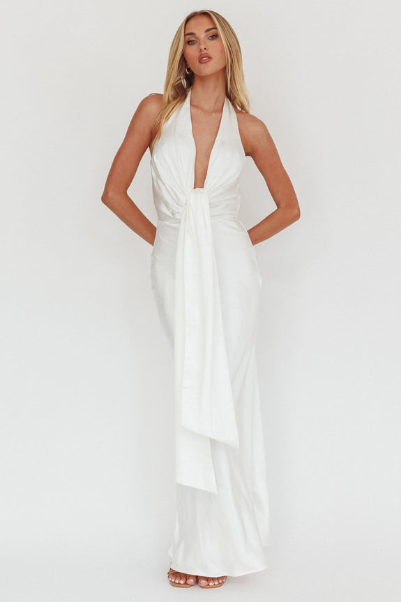 Make Believe Plunging Halterneck Maxi Dress Oyster