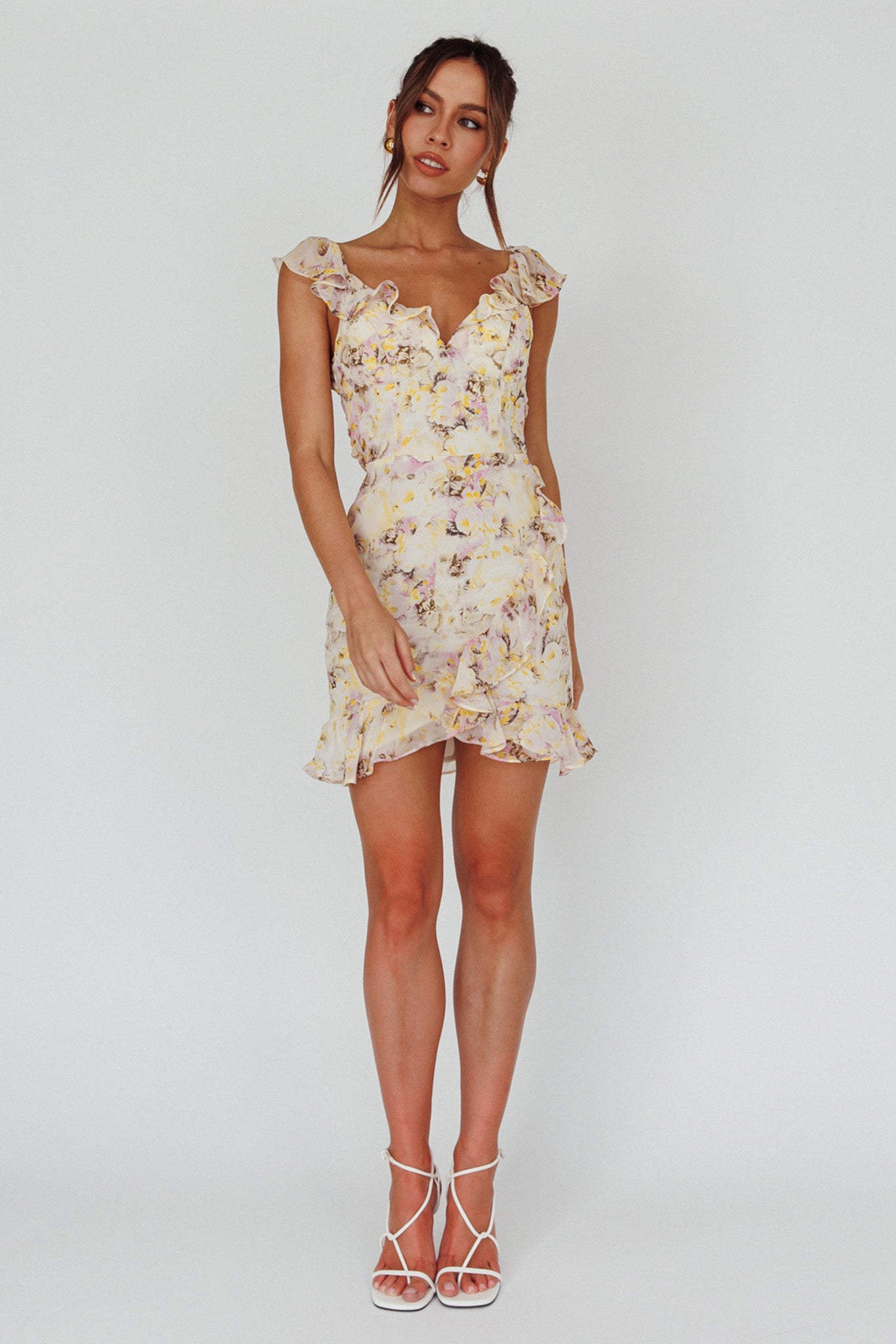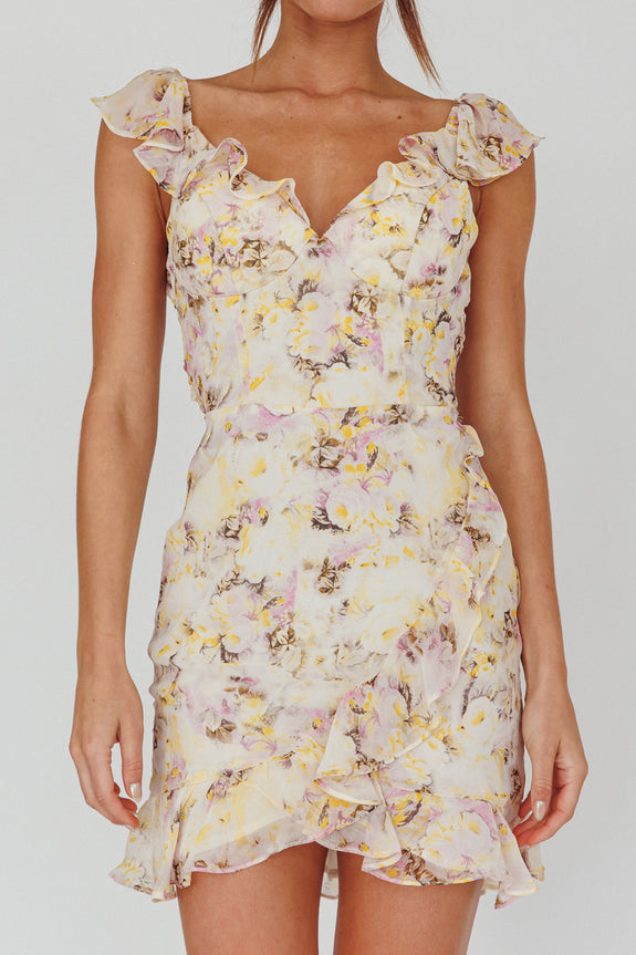 Make Memories Frill Strap Mini Dress Floral Yellow