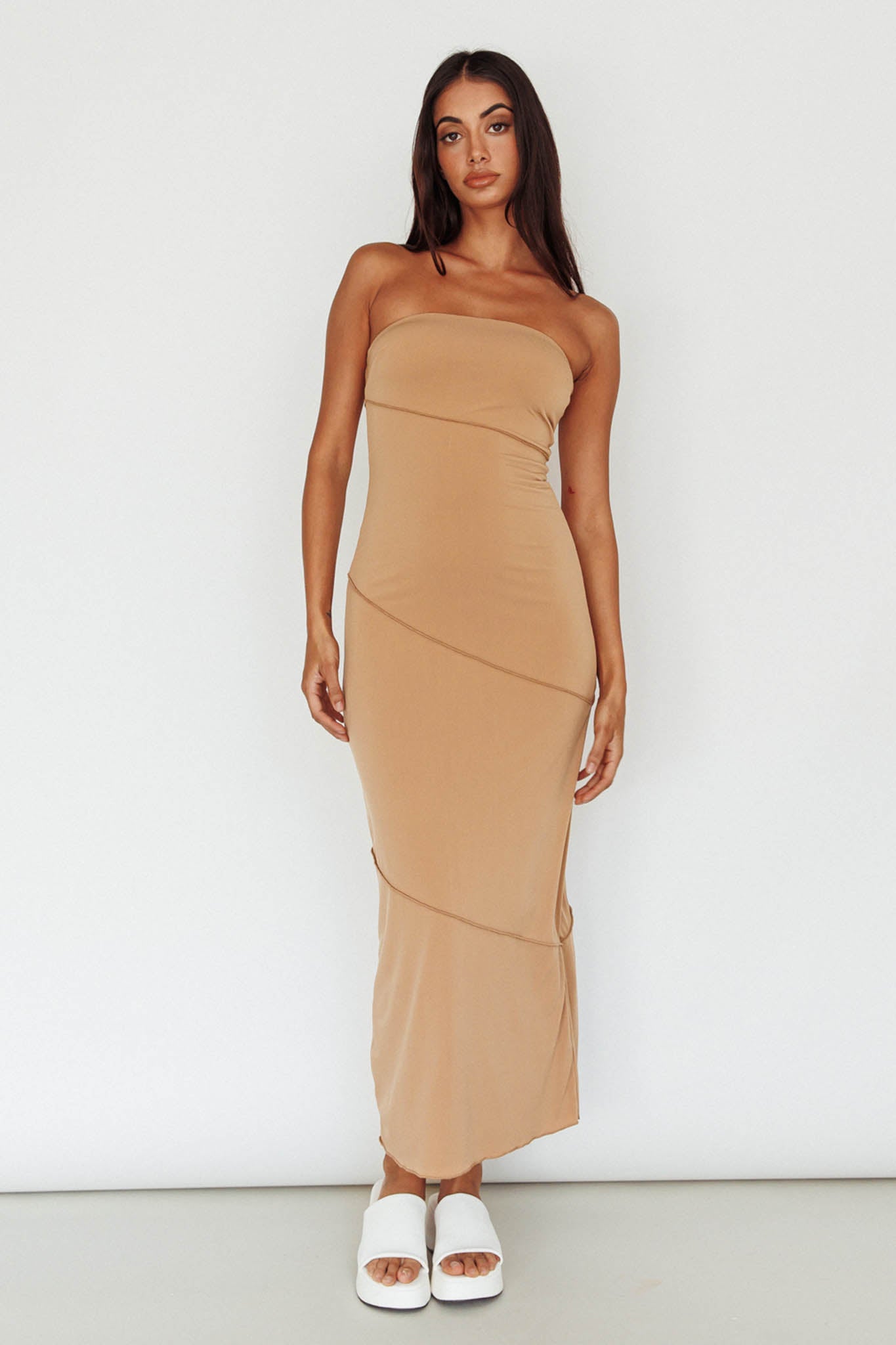 Turn heads in our chic Making Headlines midi dress. We are in love with its soft, figure hugging fabric and on-trend camel color. Perfect for weekend brunch with your besties or date night with your lover. Team it with strappy heels for a look we are loving.