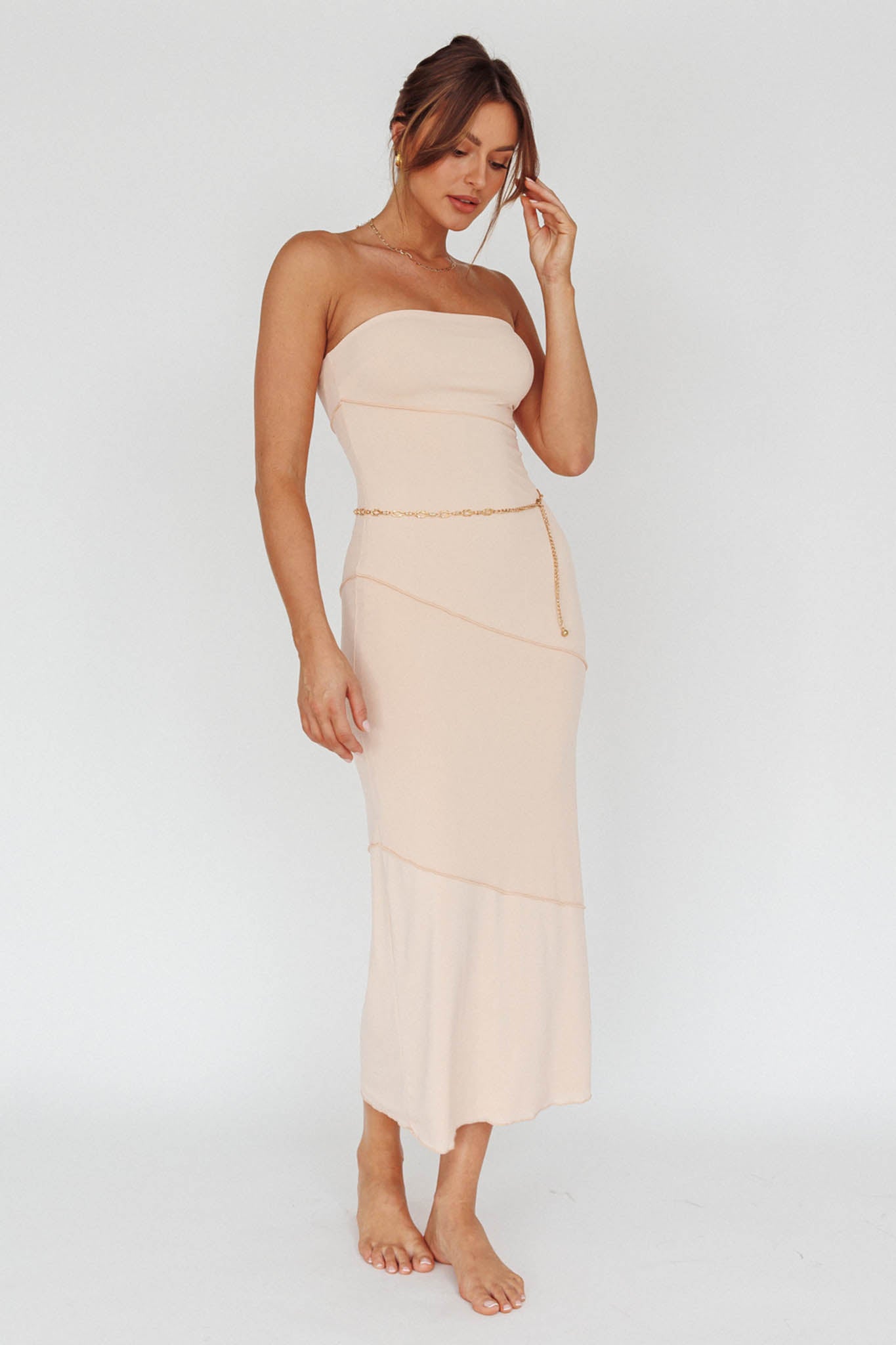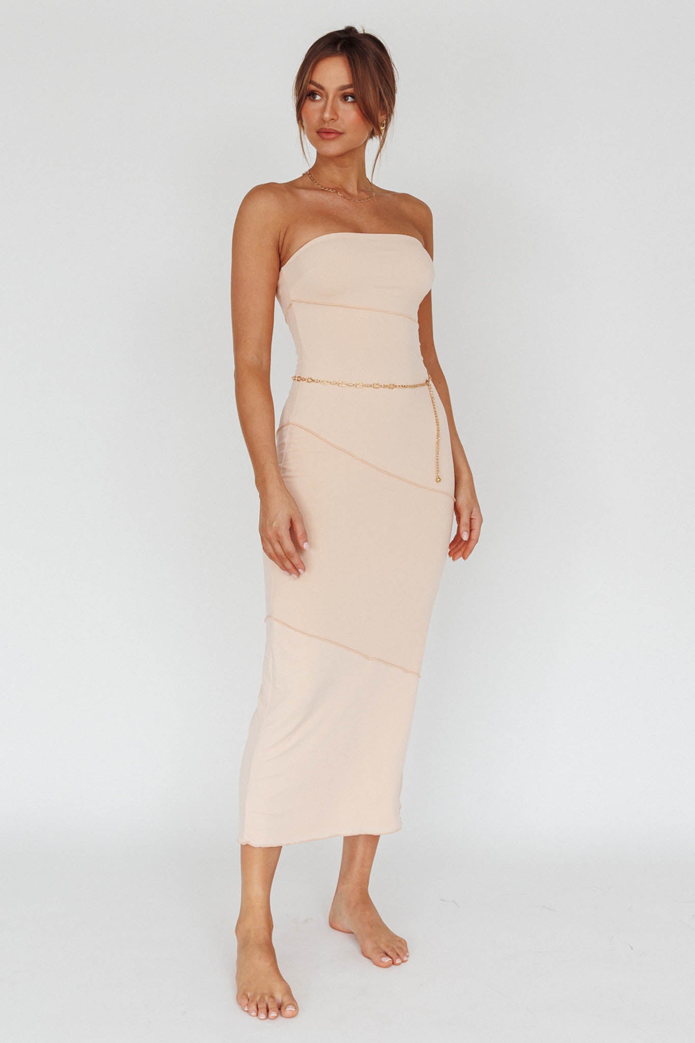 Turn heads in our chic Making Headlines midi dress. We are in love with its soft, figure hugging fabric and on-trend cream color. Perfect for weekend brunch with your besties or date night with your lover. Team it with strappy heels for a look we are loving.