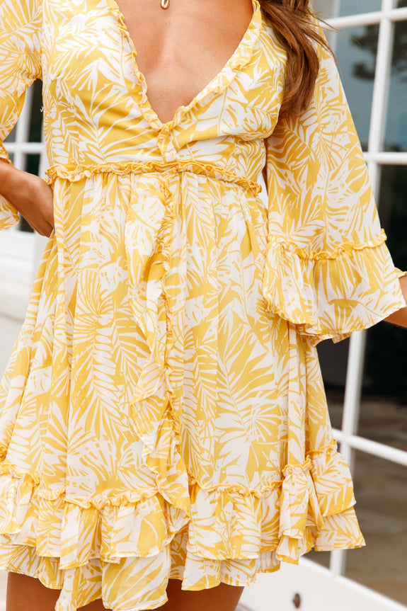 Heads will turn the moment you walk in wearing our Making Me Blush dress. We are obsessed with its tropical print and breezy bell sleeves. Perfect for a special birthday occasion or work event. Team it with nude heels and a tote for a look we are loving!