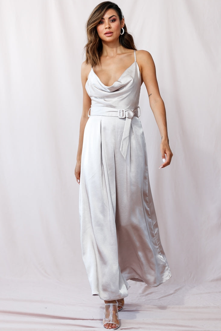 You're a style queen in our super chic Mali jumpsuit. Featuring super soft satin fabric, wide leg pant, adjustable cami straps and separate belt. We can't get enough! Perfect for a girl's night out teamed with chunky gold jewelry and strappy heels. Get it, girl!